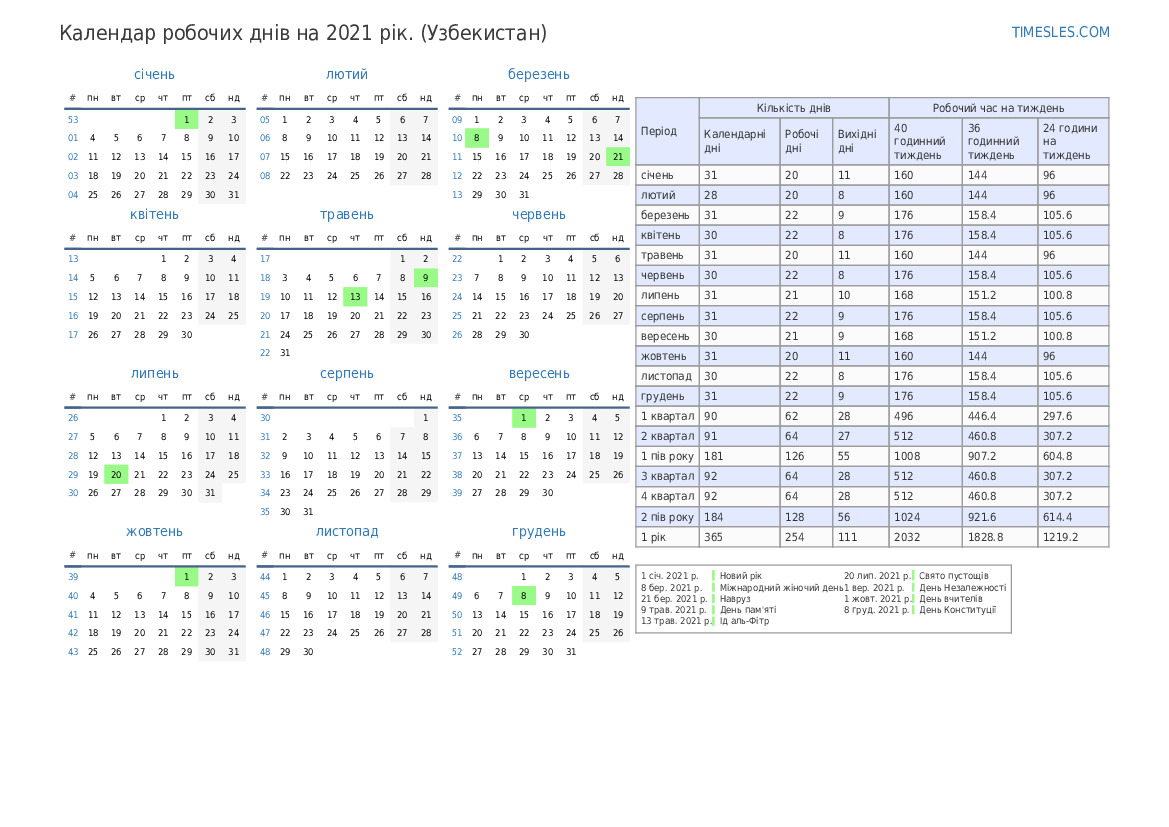 Календар робочих днів грудень 2021 року з тижнями. П’ятиденний робочий тиждень. в Узбекистані 2 свят та вихідні на грудень 2021 року. Календар з робочим часом та перенесенням відпусток.