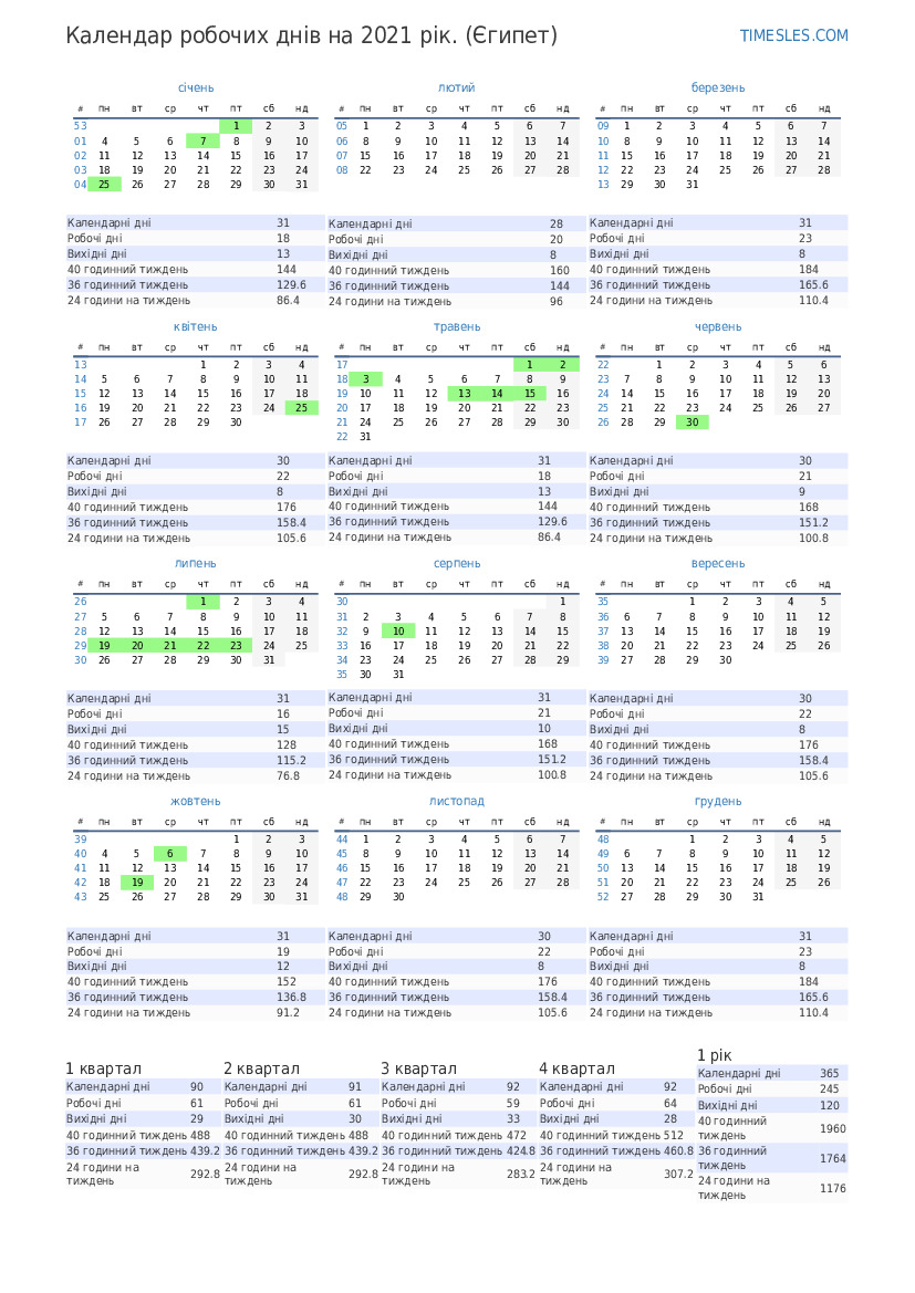 Календар 4 кварталу 2021 р. для Єгипту