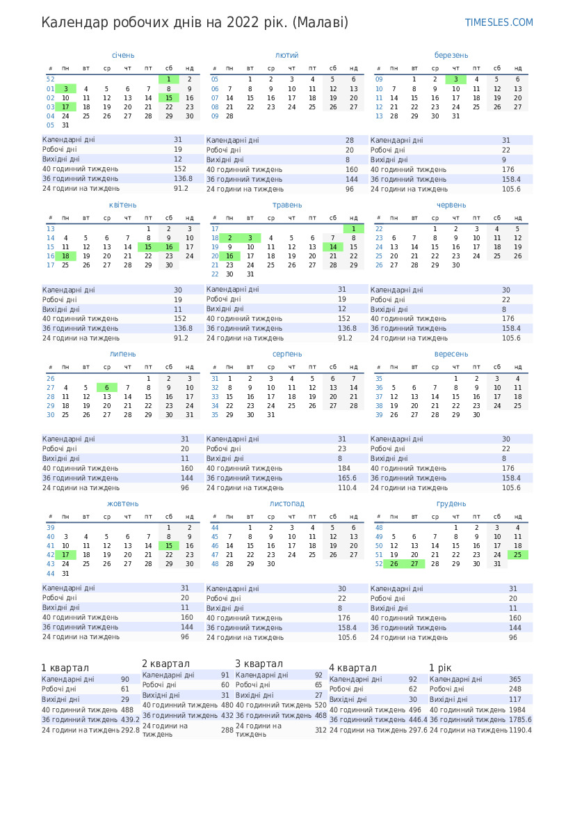 Календар 3 кварталу 2022 р. для Малаві