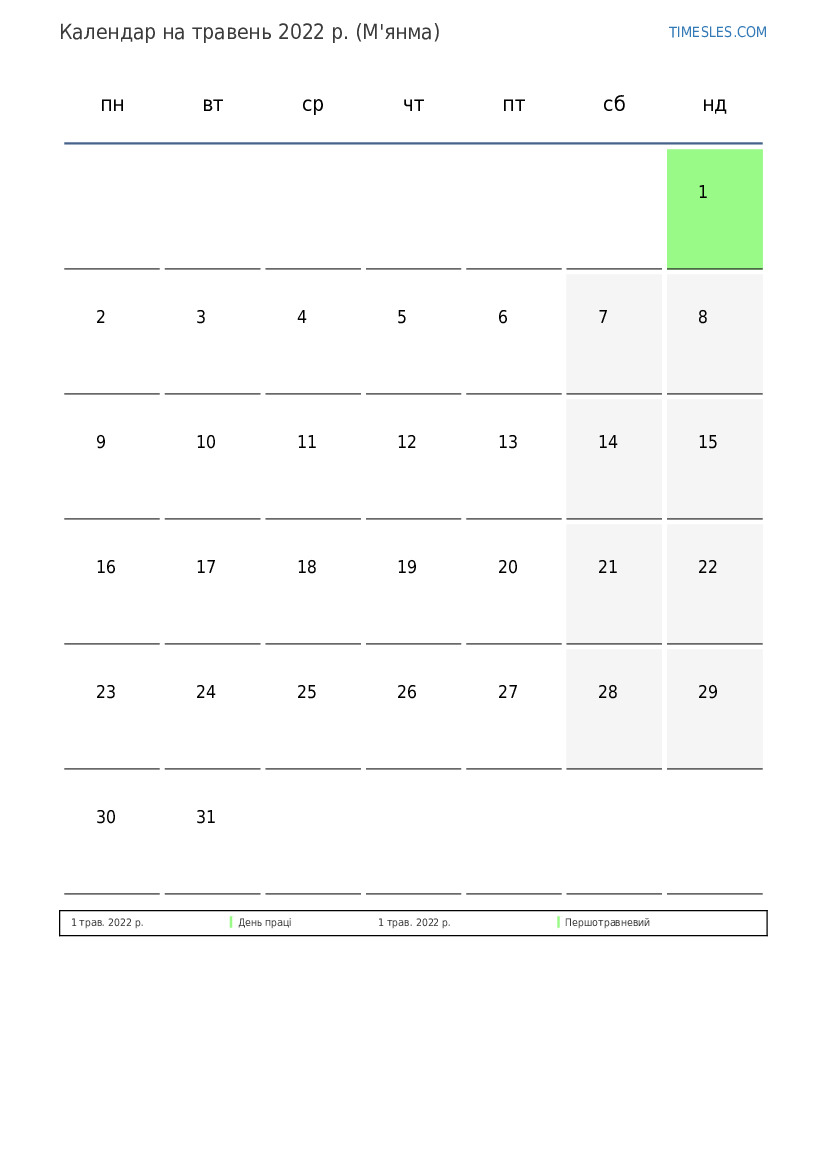 Завантажте та роздрукуйте календар PDF зі святами та вихідними на травень 2022 року для М’янми