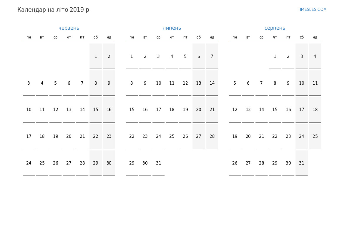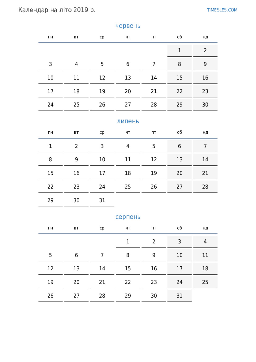 Завантажте та роздрукуйте календар PDF зі святами та вихідними на літо 2019 року для Парагваю