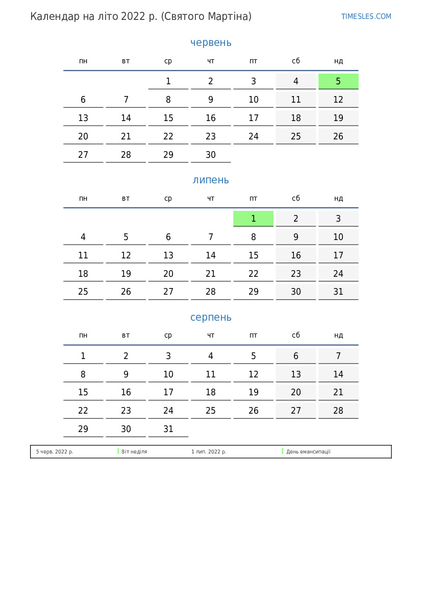 Завантажте та роздрукуйте календар PDF зі святами та вихідними на літо 2022 року для Сінт-Мартена