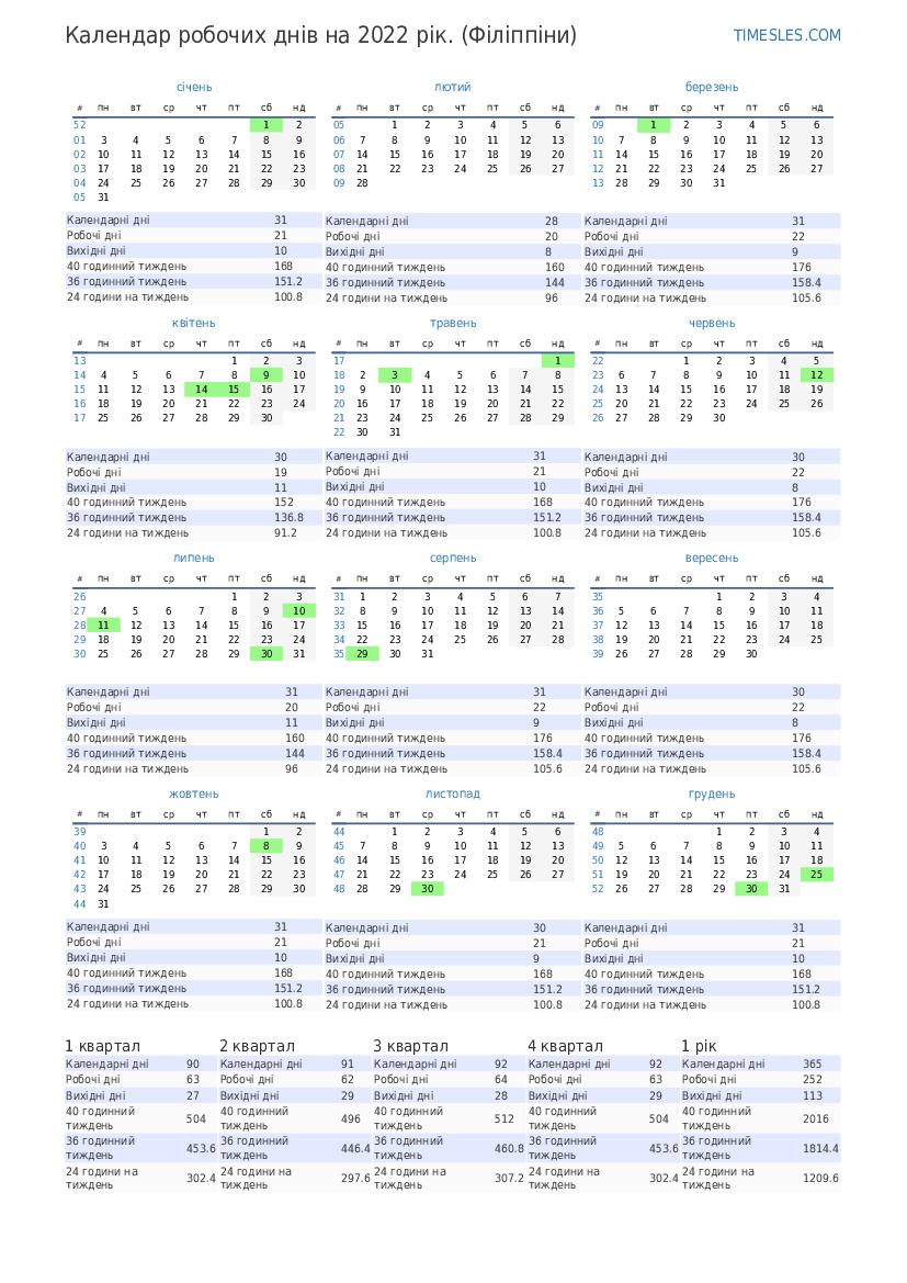Робочі дні липень 2022 р. на Філіппінах 3 свят та вихідні на липень 2022.
