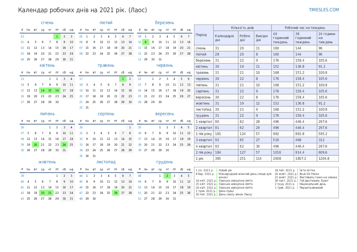 | 40 годинний тиждень | 160 |
