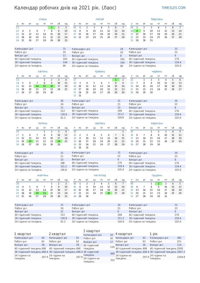 | Робочі дні | 21 |