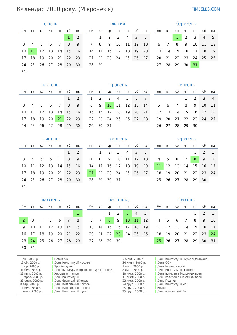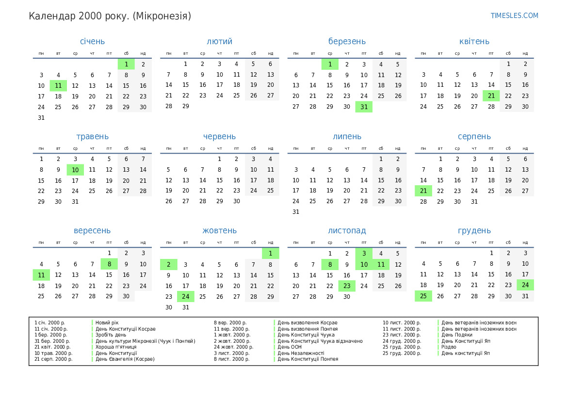 31 бер. 2000 р. День культури Мікронезії (Чуук і Понпей)
