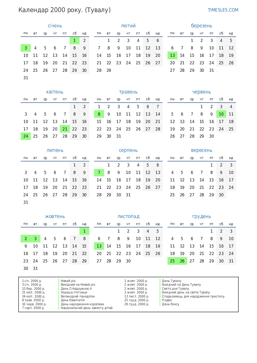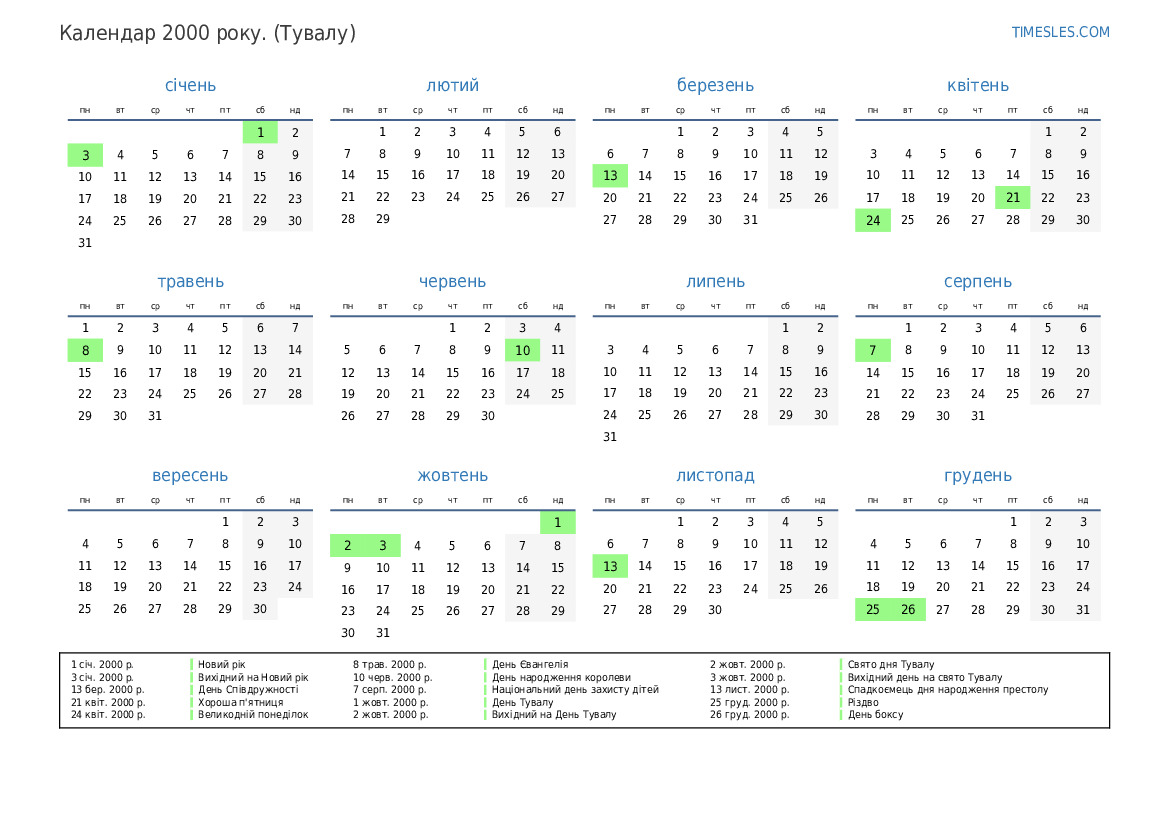 2 жовт. 2000 р. Вихідний на День Тувалу