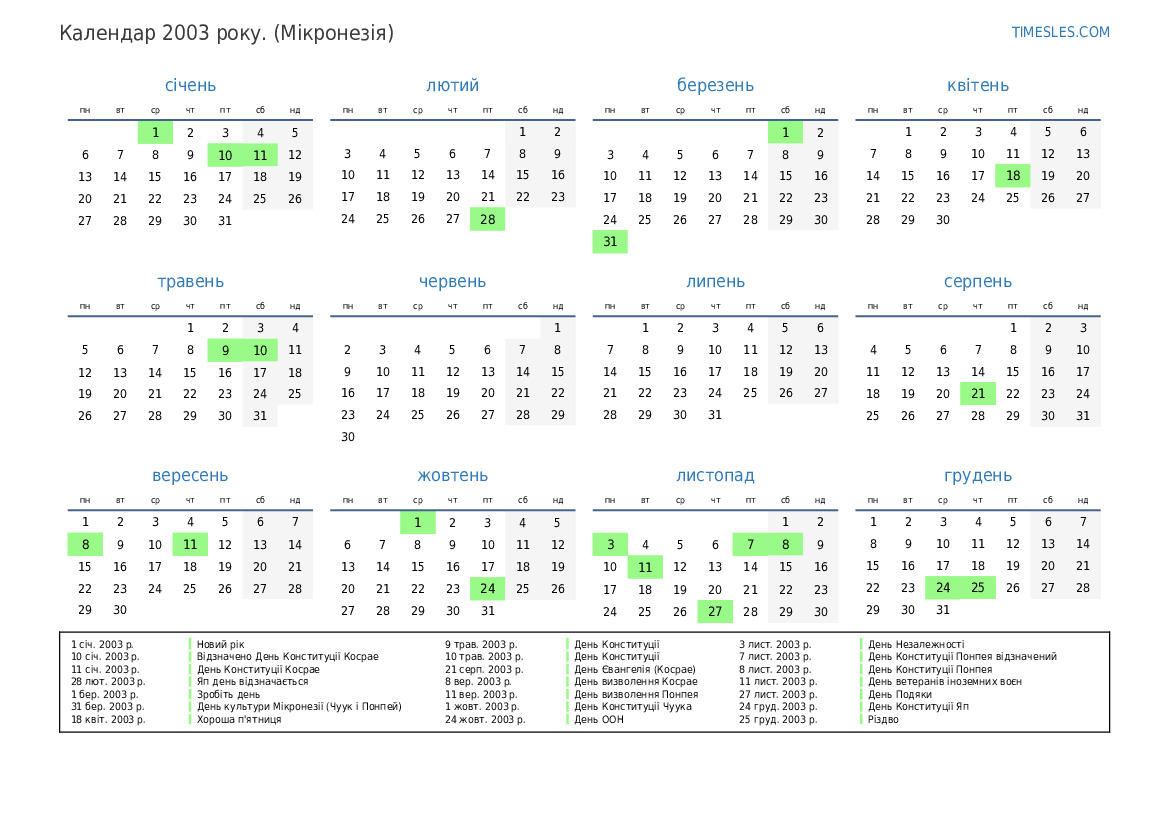 31 бер. 2003 р. День культури Мікронезії (Чуук і Понпей)