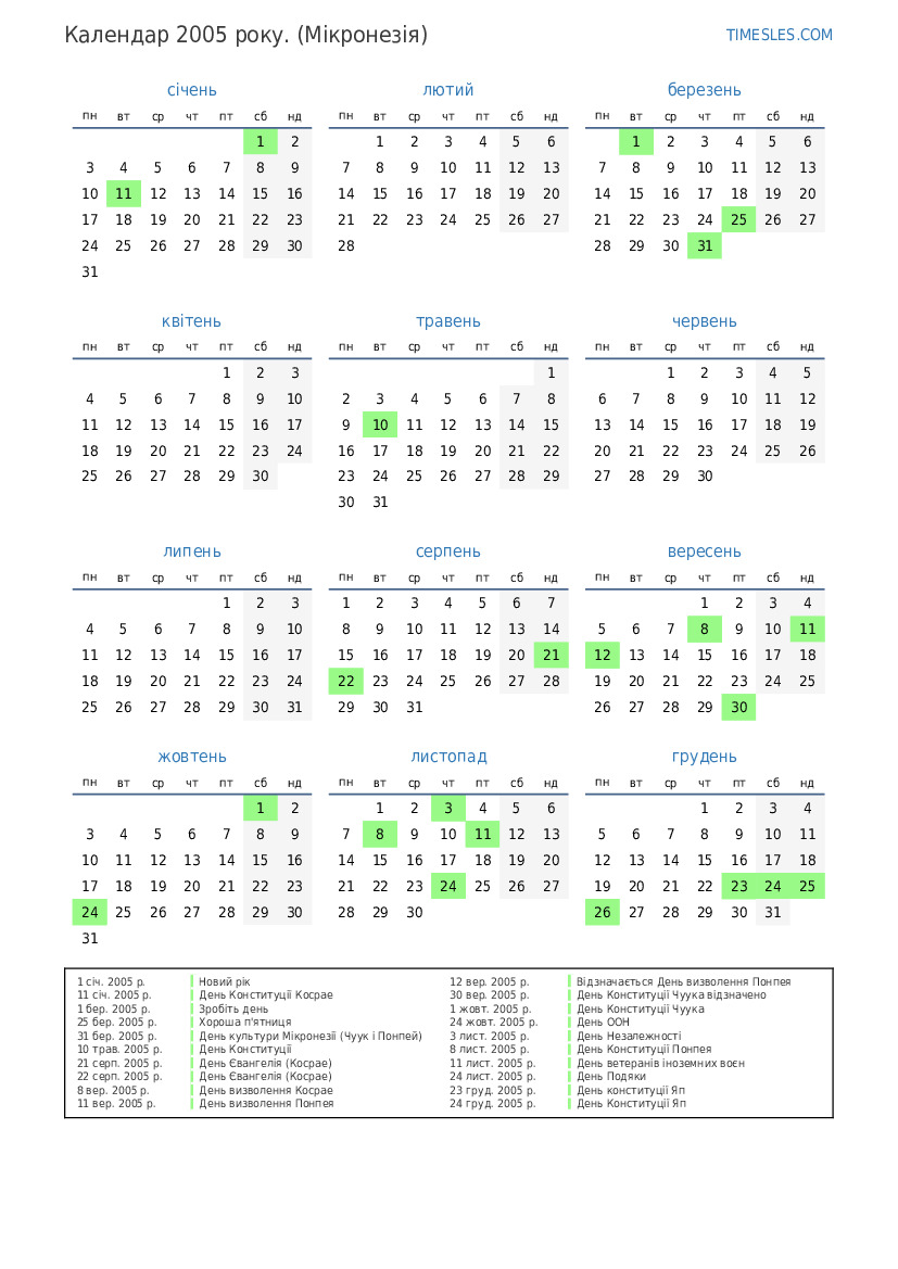 31 бер. 2005 р. День культури Мікронезії (Чуук і Понпей)