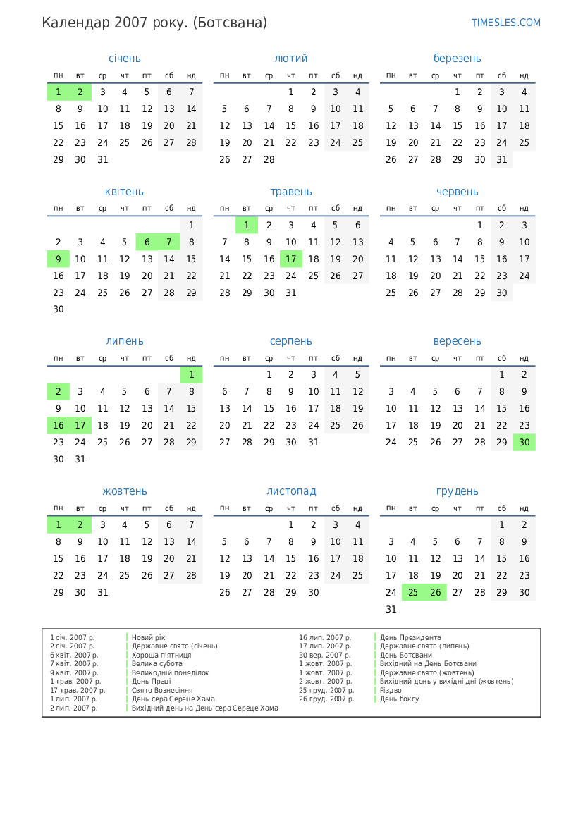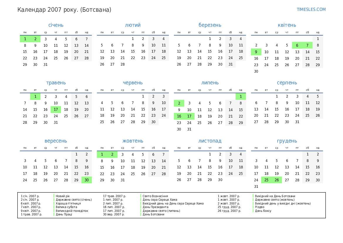 1 жовт. 2007 р. Вихідний на День Ботсвани