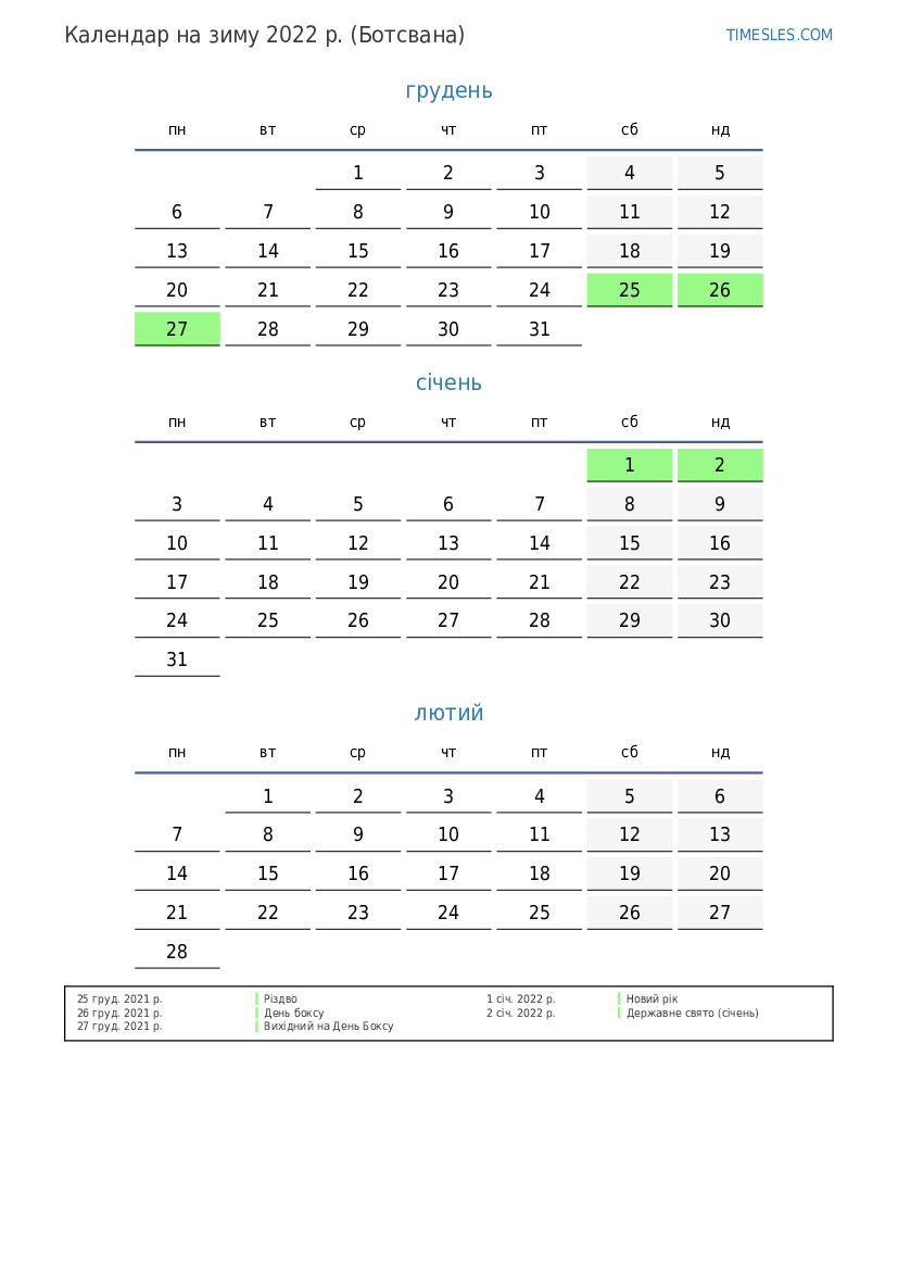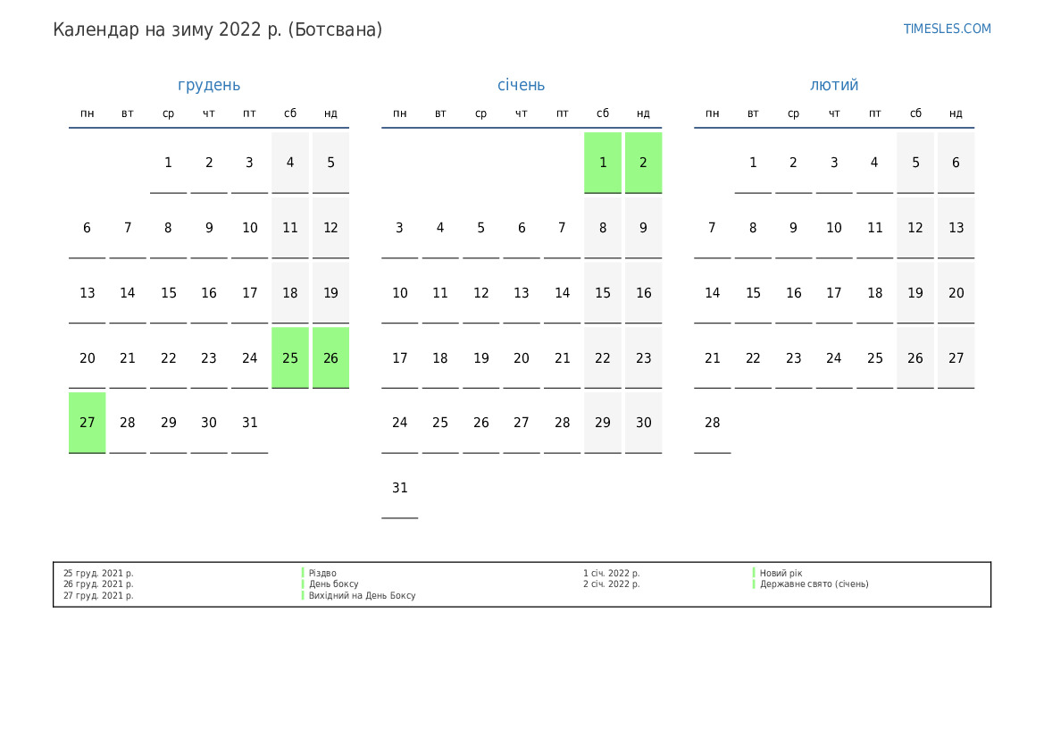 27 груд. 2022 р. Вихідний на День Боксу