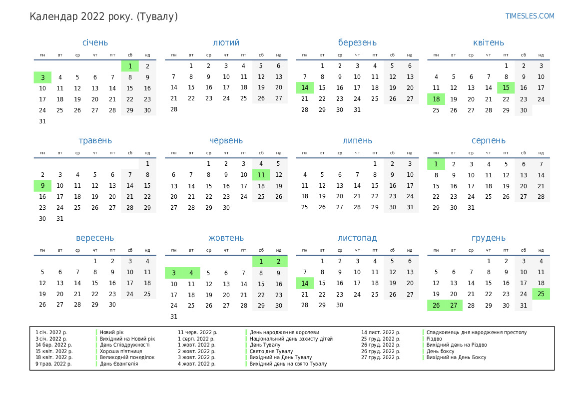 3 жовт. 2022 р. Вихідний на День Тувалу