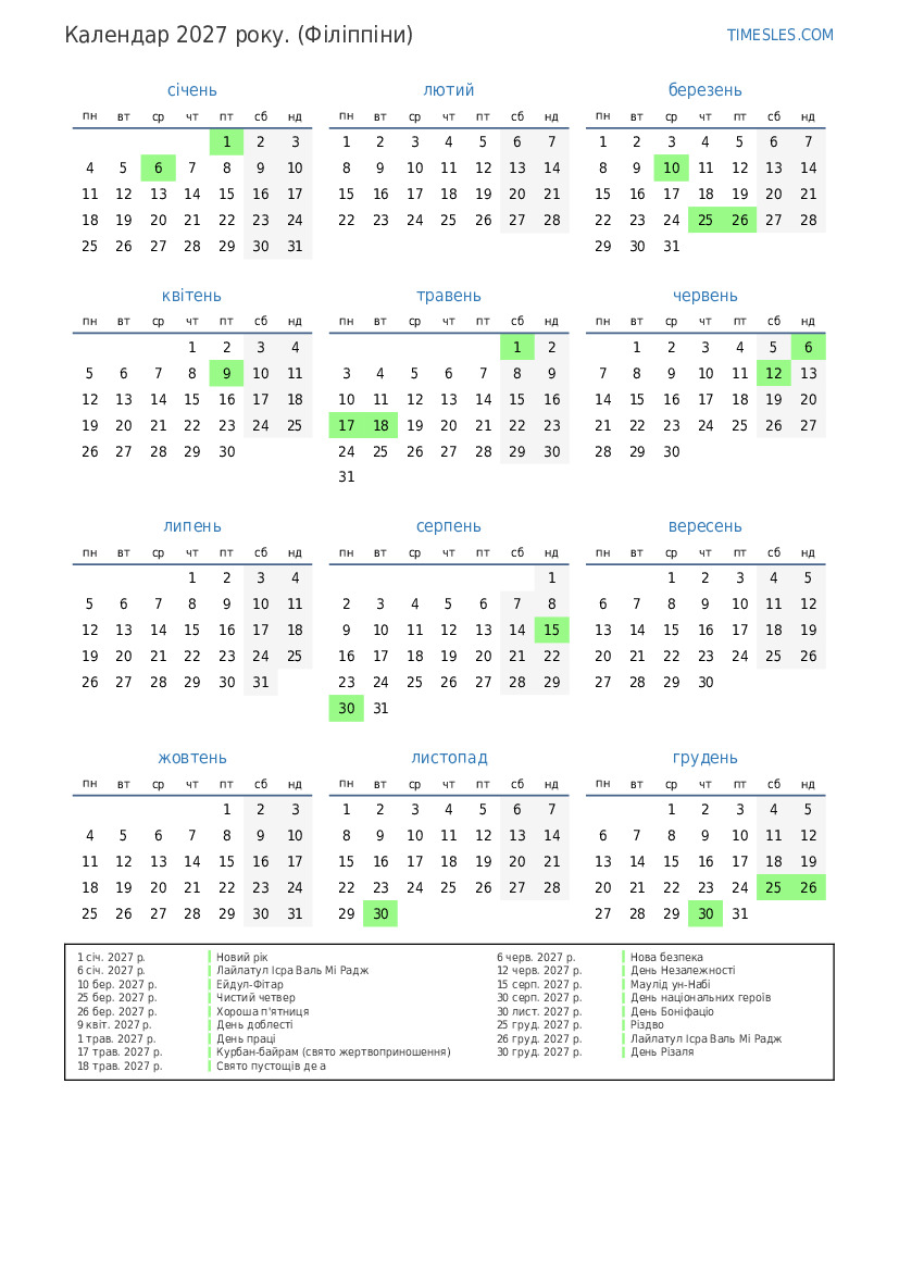 23 січ. 2027 р. Перший день Філіппінської Республіки