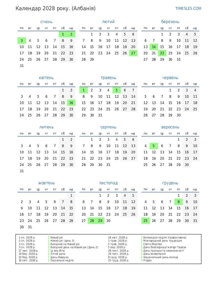 17 квіт. 2028 р. Великодній понеділок (православний)
