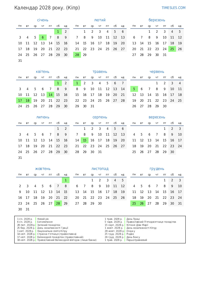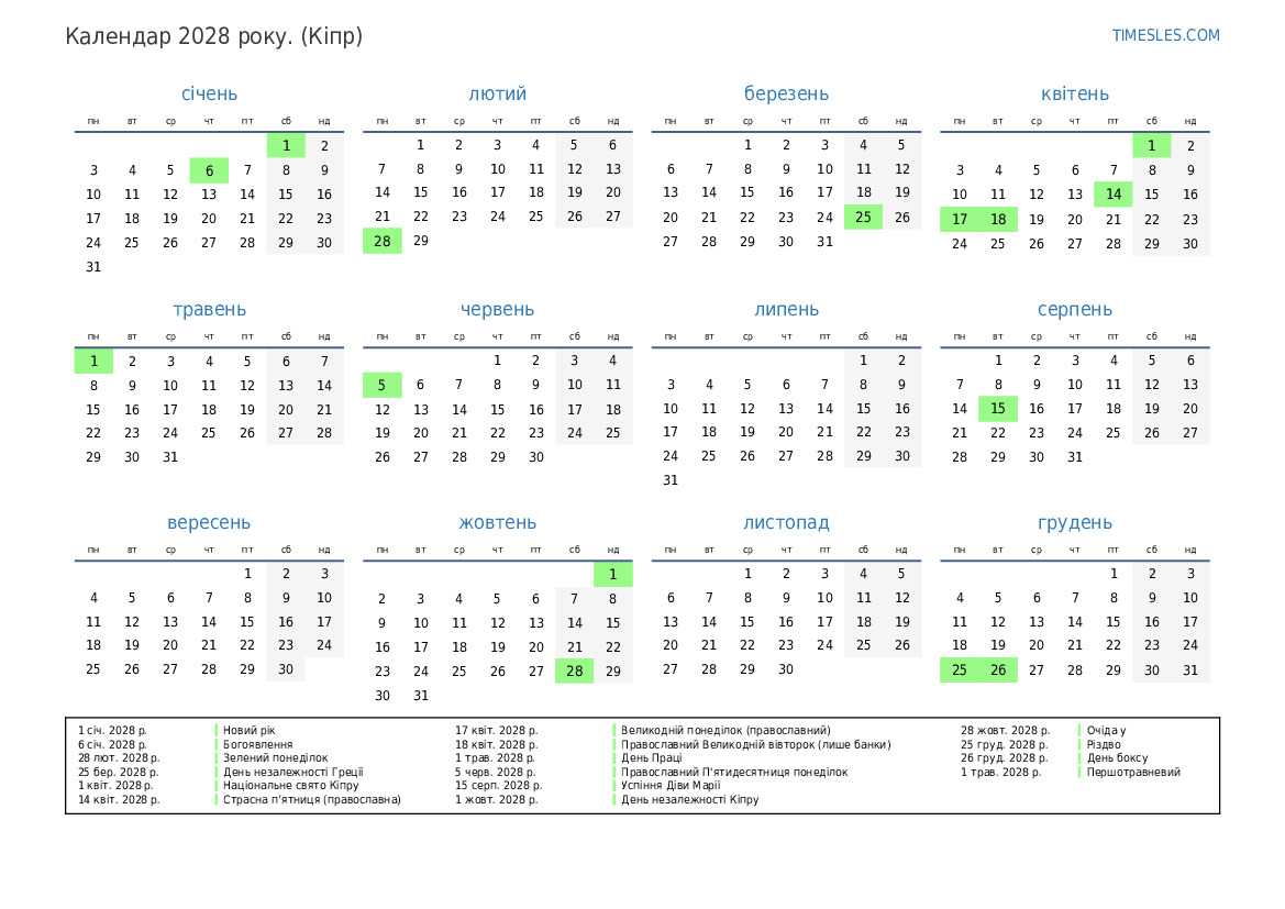 1 квіт. 2028 р. Національне свято Кіпру