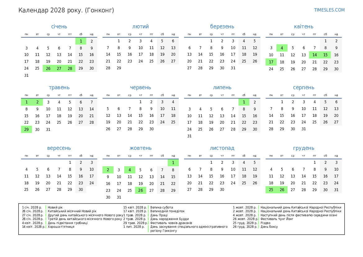 1 жовт. 2028 р. Національний день Китайської Народної Республіки