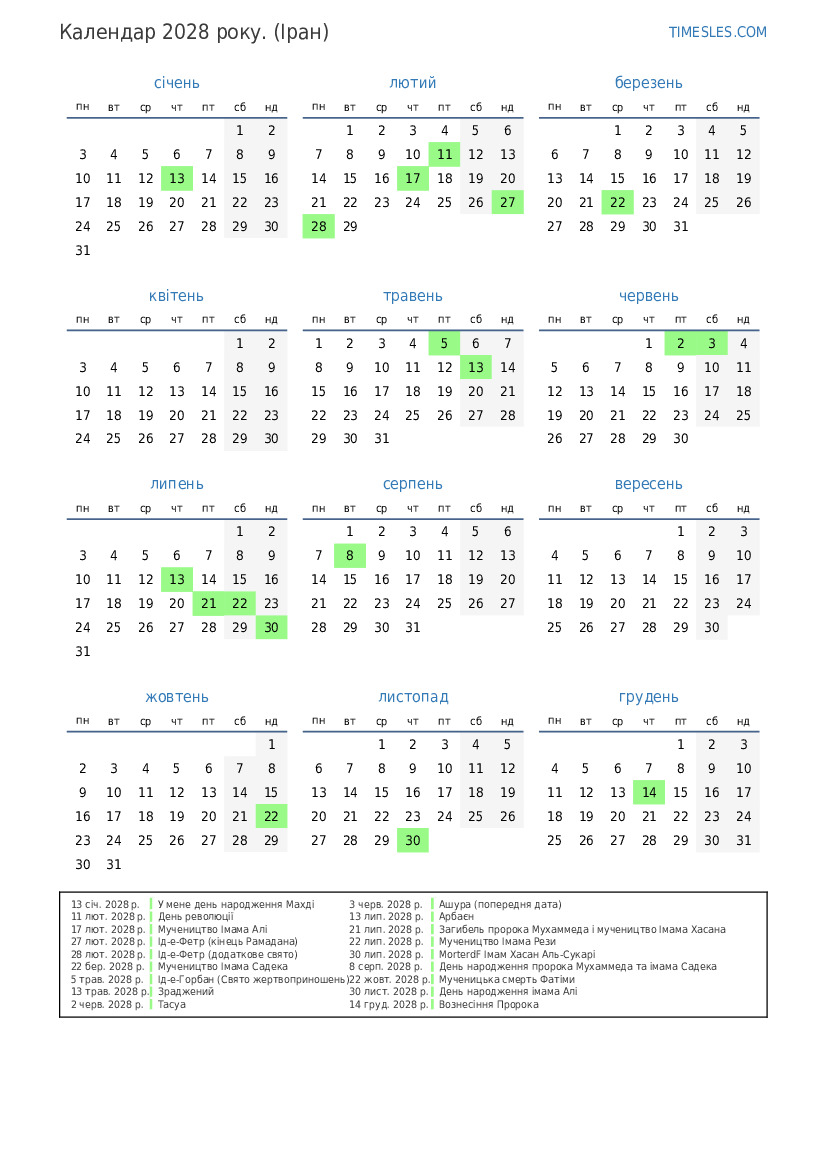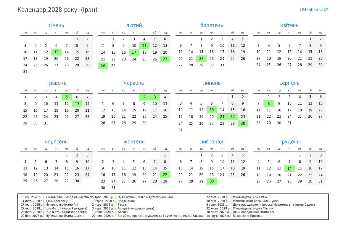 21 лип. 2028 р. Загибель пророка Мухаммеда і мучеництво Імама Хасана