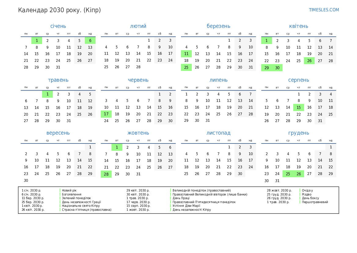30 квіт. 2030 р. Православний Великодній вівторок (лише банки)