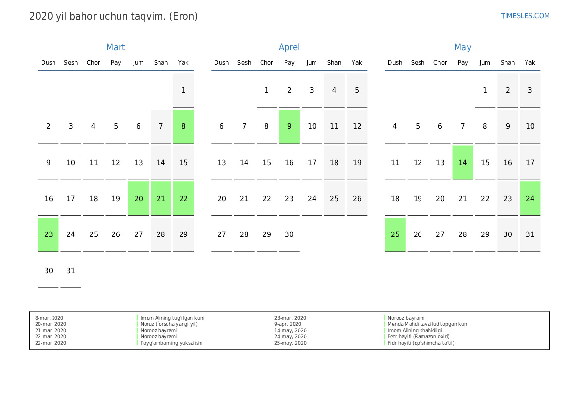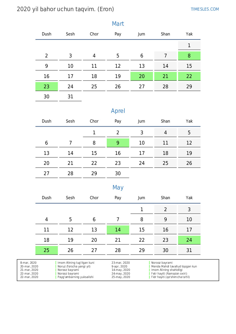 25-may, 2020 Fidr hayiti (qo'shimcha ta'til)