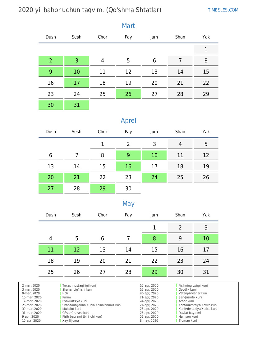 1-may, 2020 Uyda bo'lishning oxirgi kuni bo'yicha ko'rsatma