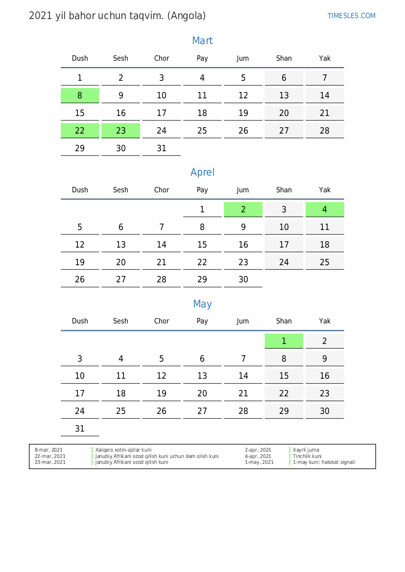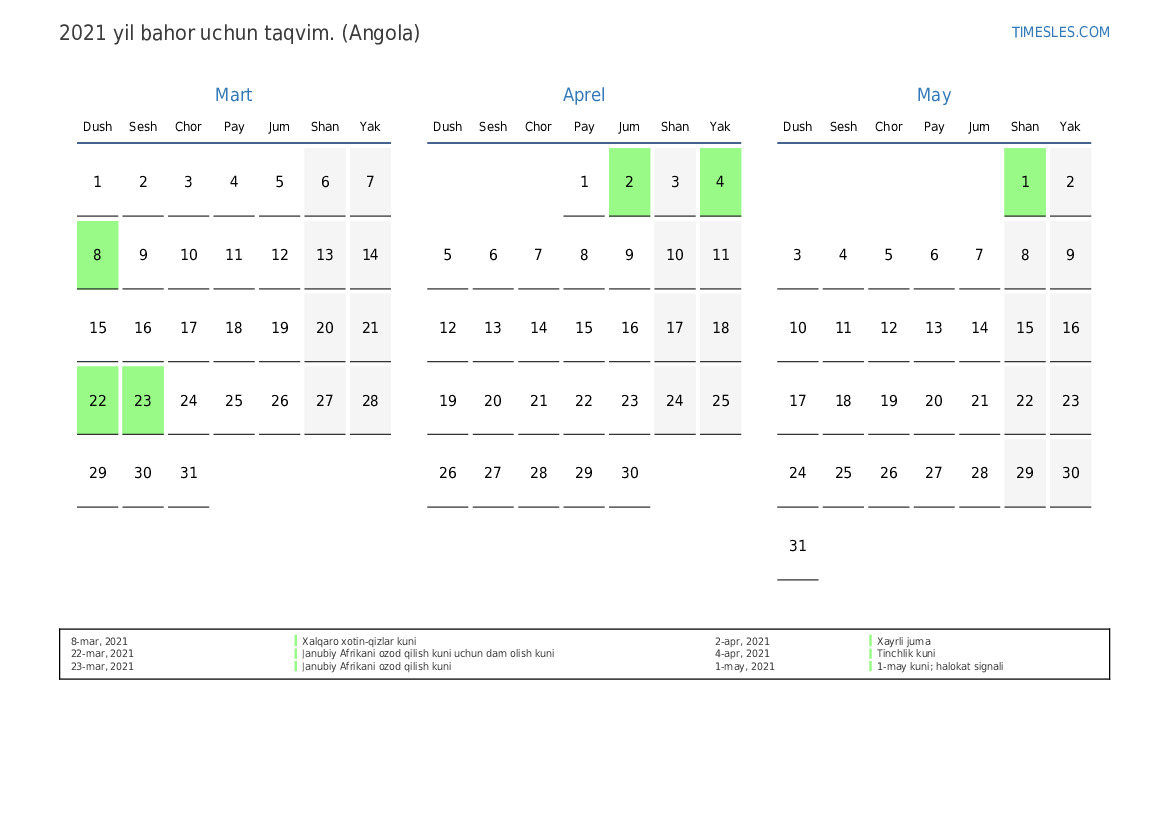 22-mar, 2021 Janubiy Afrikani ozod qilish kuni uchun dam olish kuni