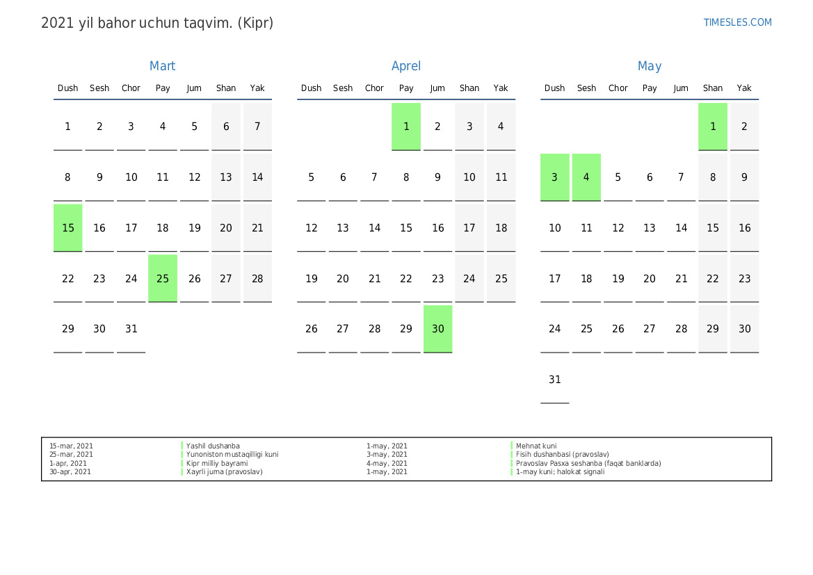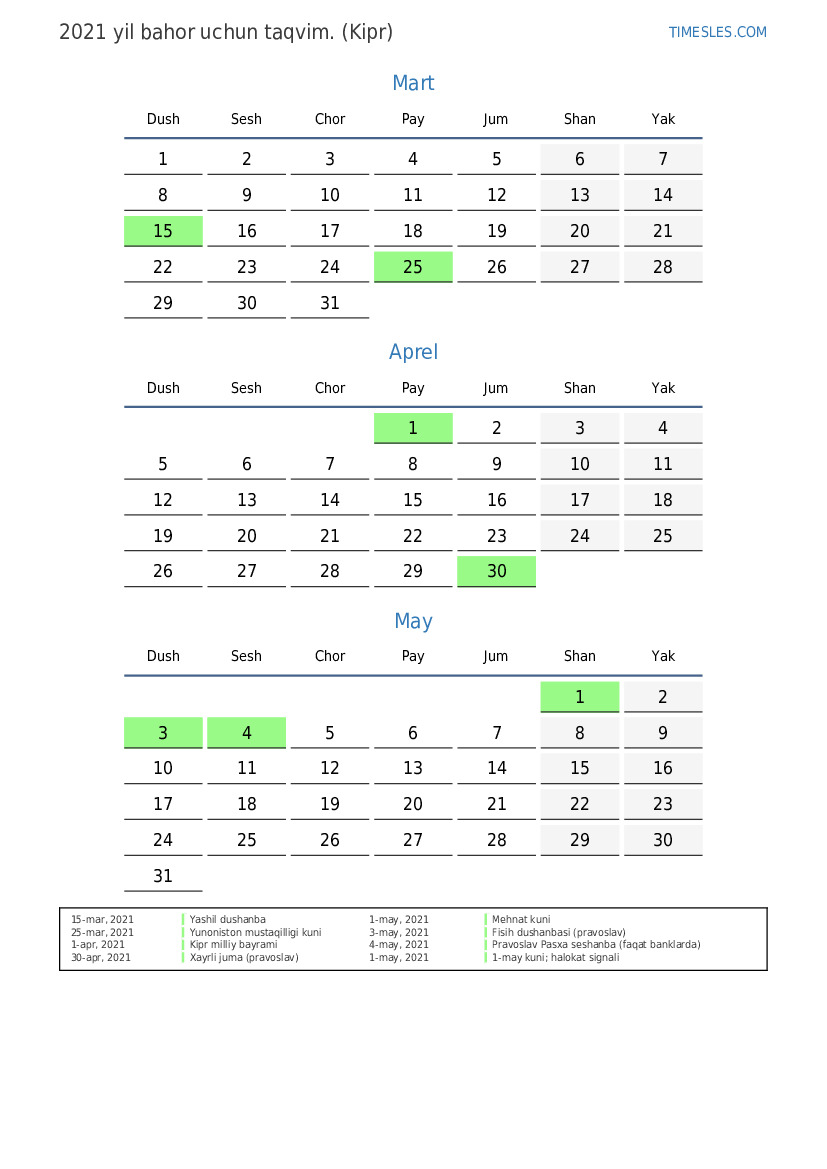 4-may, 2021 Pravoslav Pasxa seshanba (faqat banklarda)