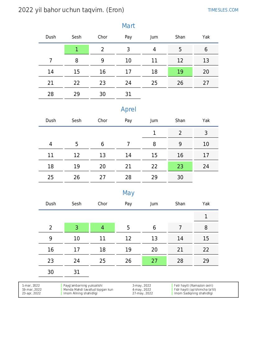 4-may, 2022 Fidr hayiti (qo'shimcha ta'til)