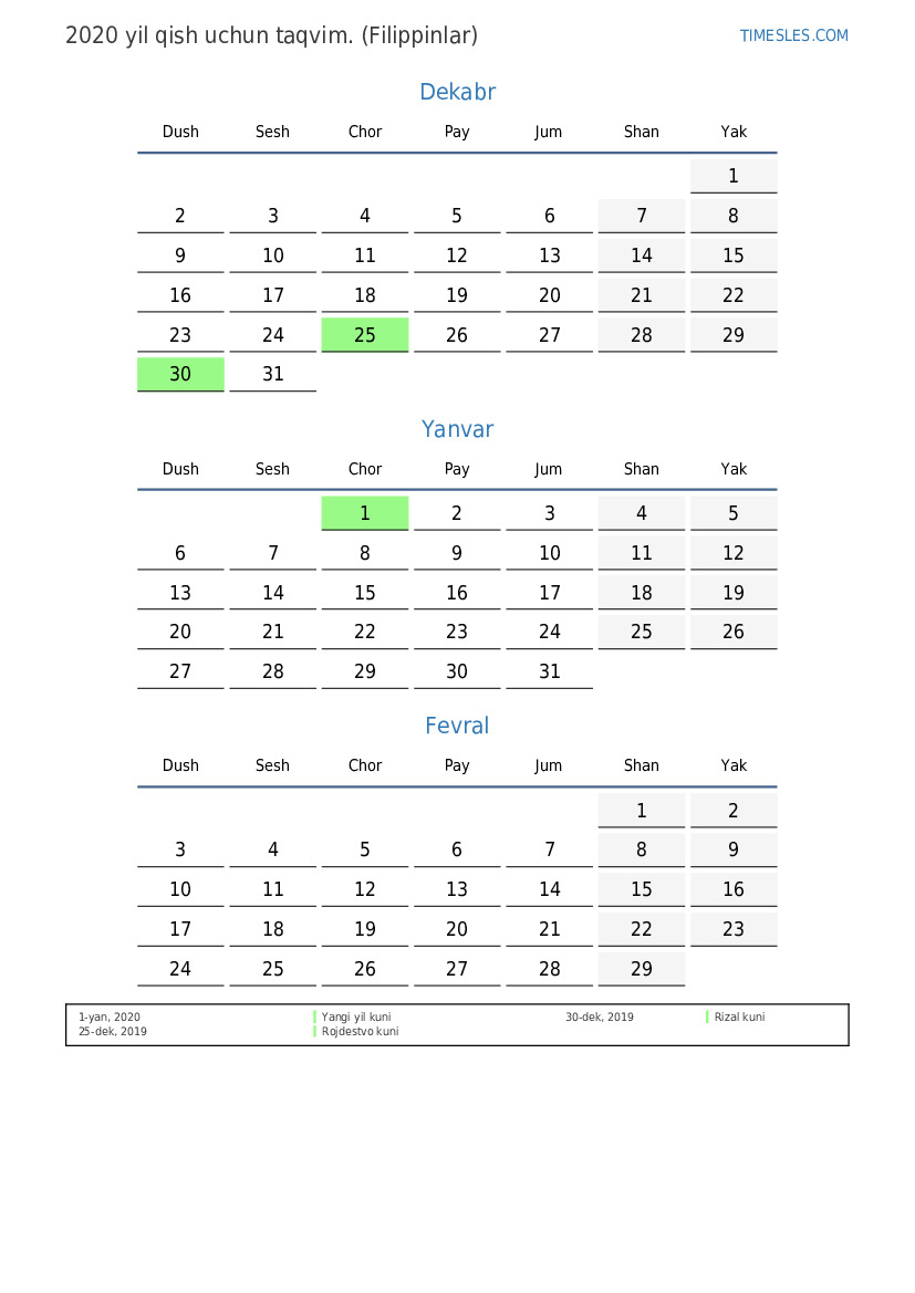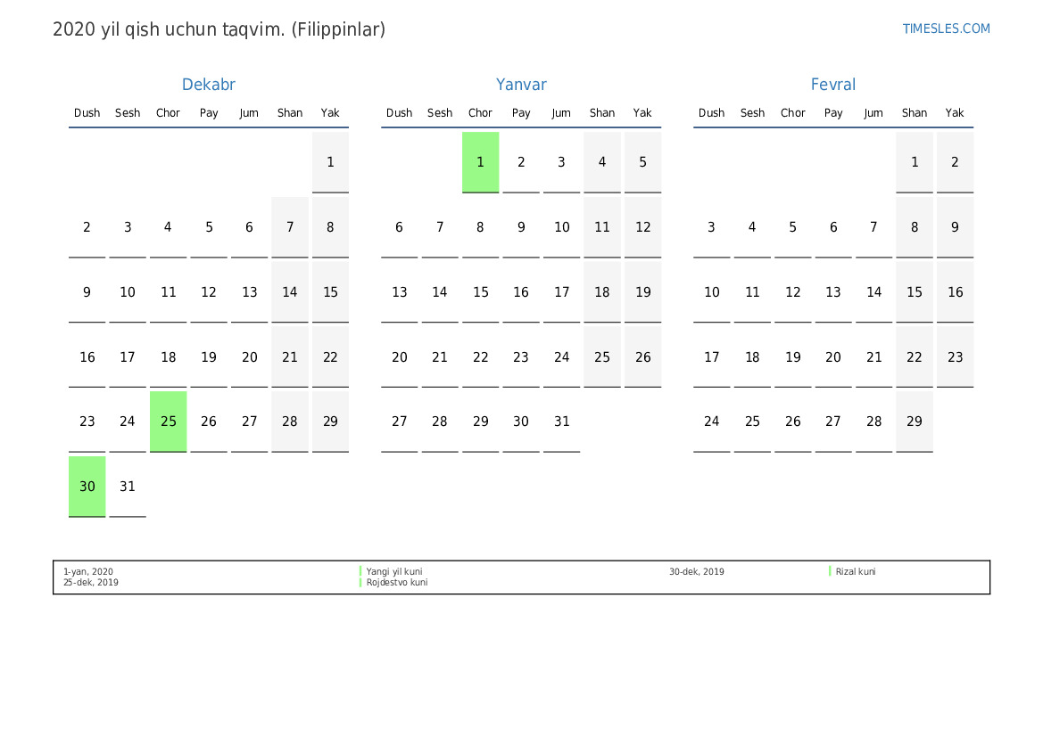 1-yan, 2020 Yangi yil kuni