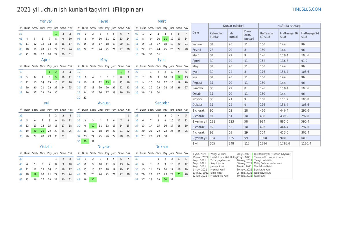 Filippin uchun Sentabr 2021 uchun ish kuni