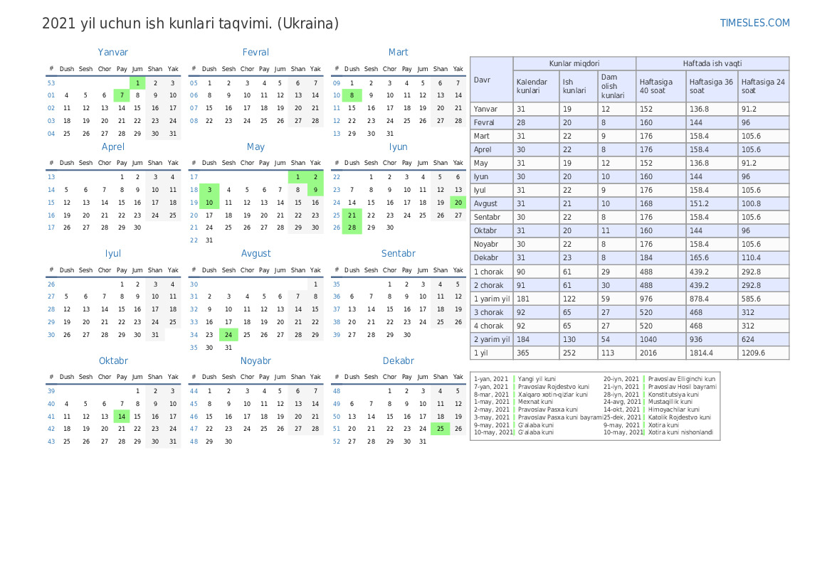 Ukraina uchun Noyabr 2021 uchun ish kuni
