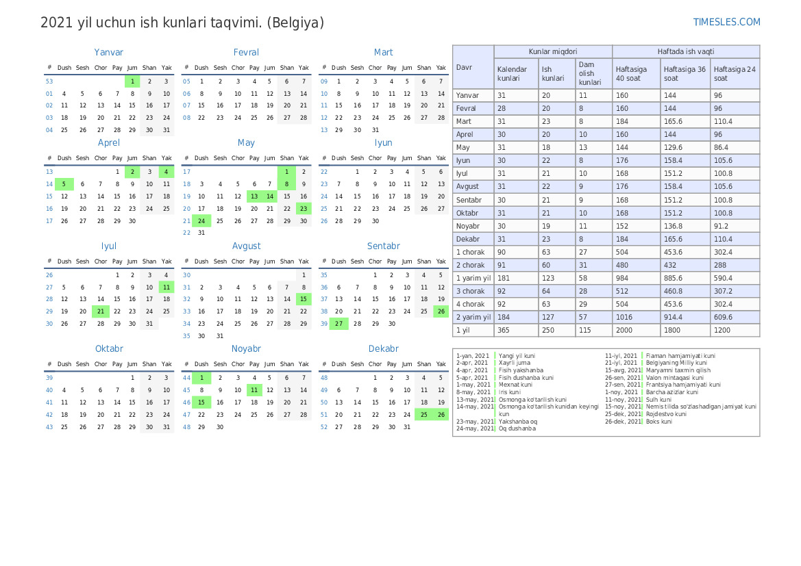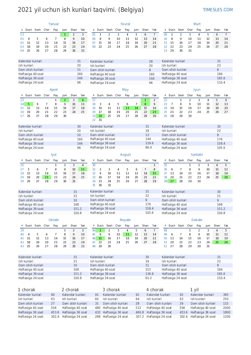 | Ish kunlari | 21 |