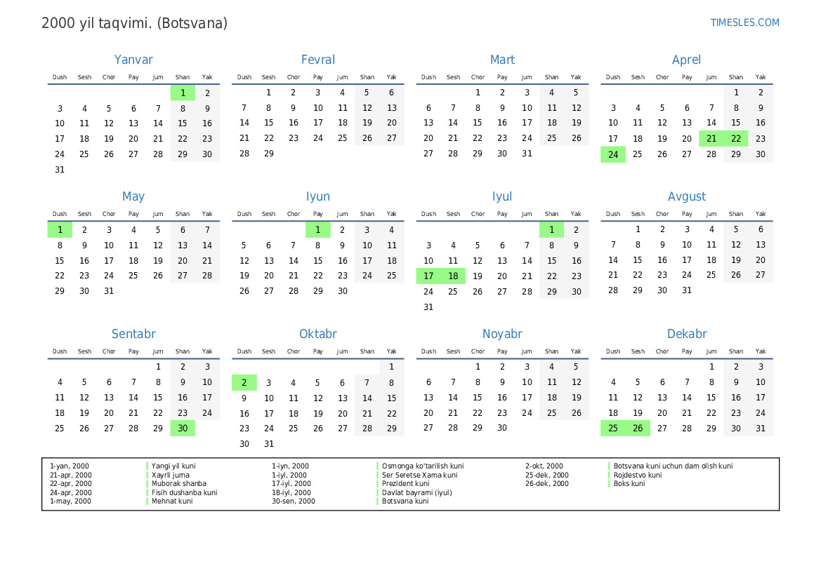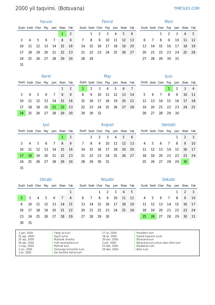 2-okt, 2000 Botsvana kuni uchun dam olish kuni