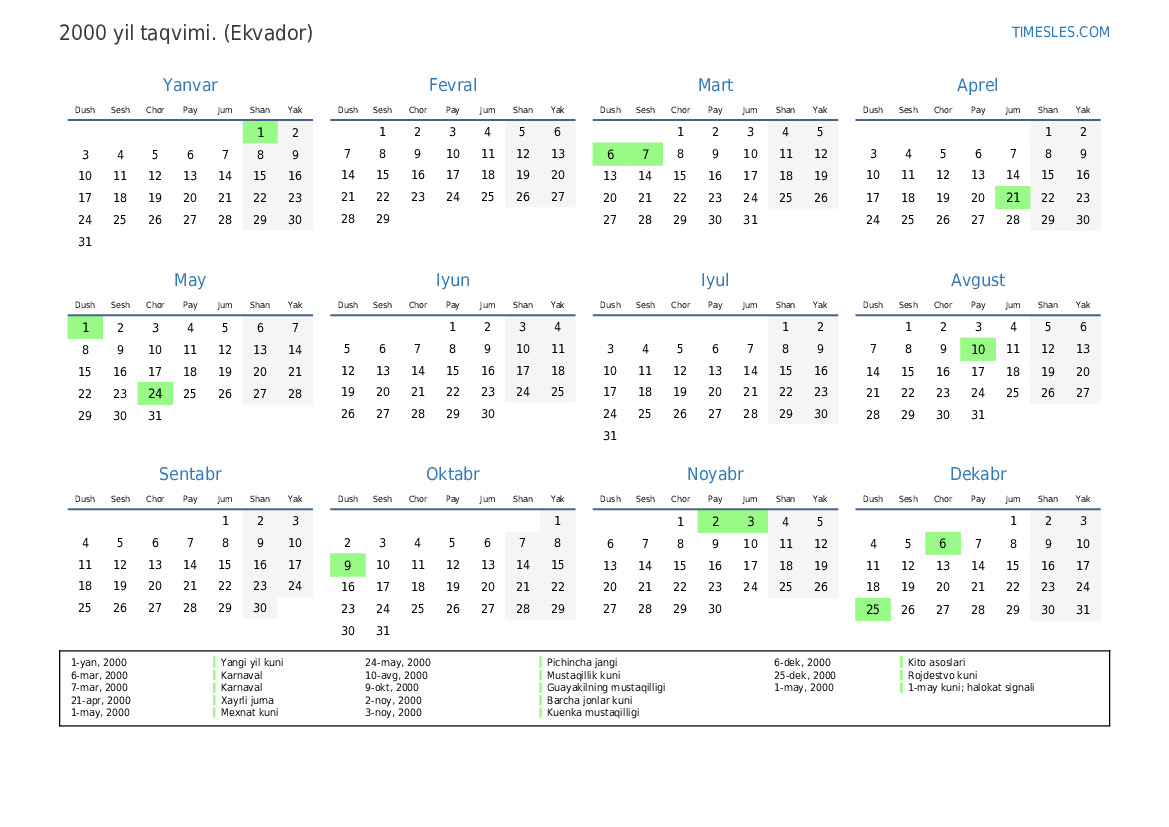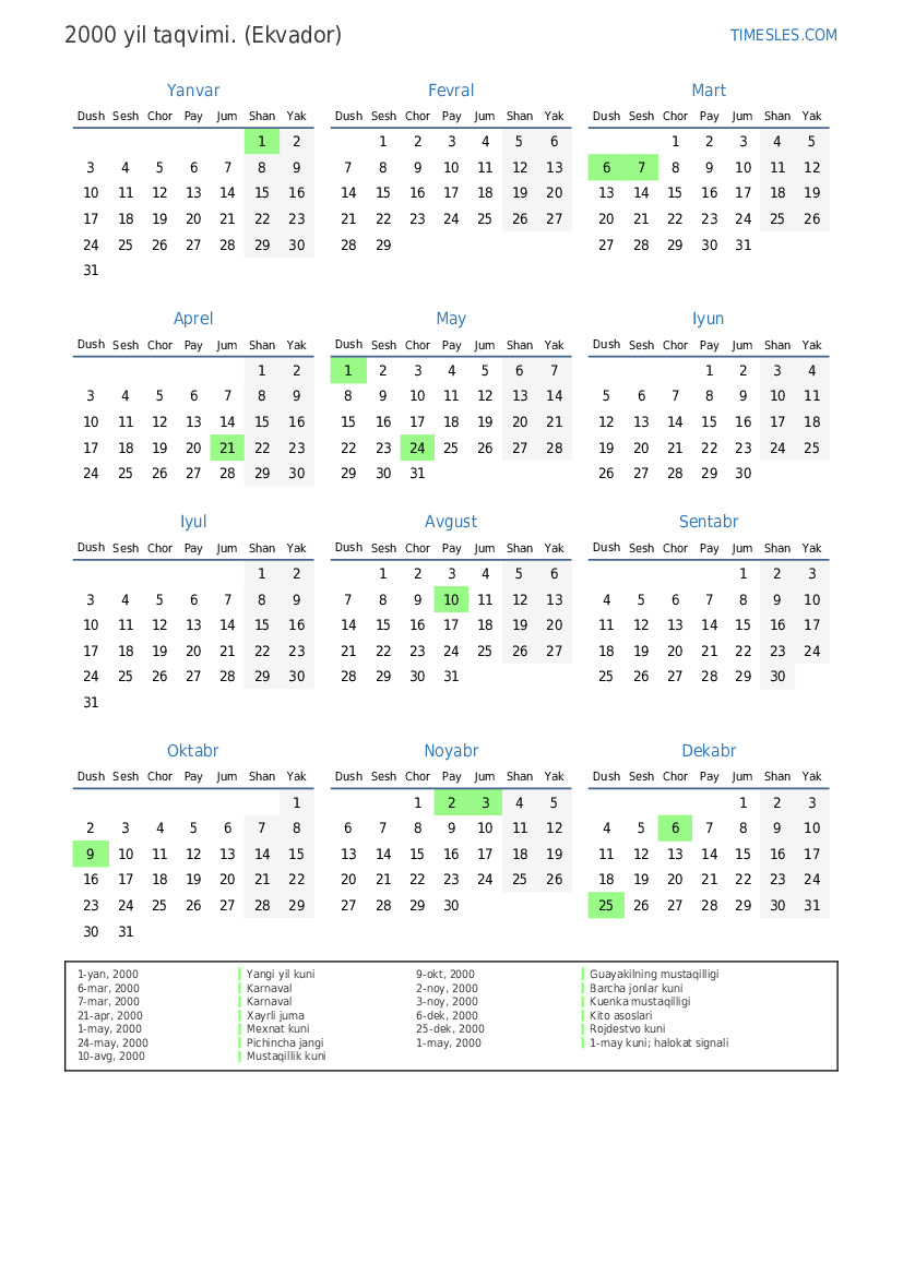 11-mar, 2000 Maxsus ish kuni (dushanba kuni karnaval uchun tovon puli)