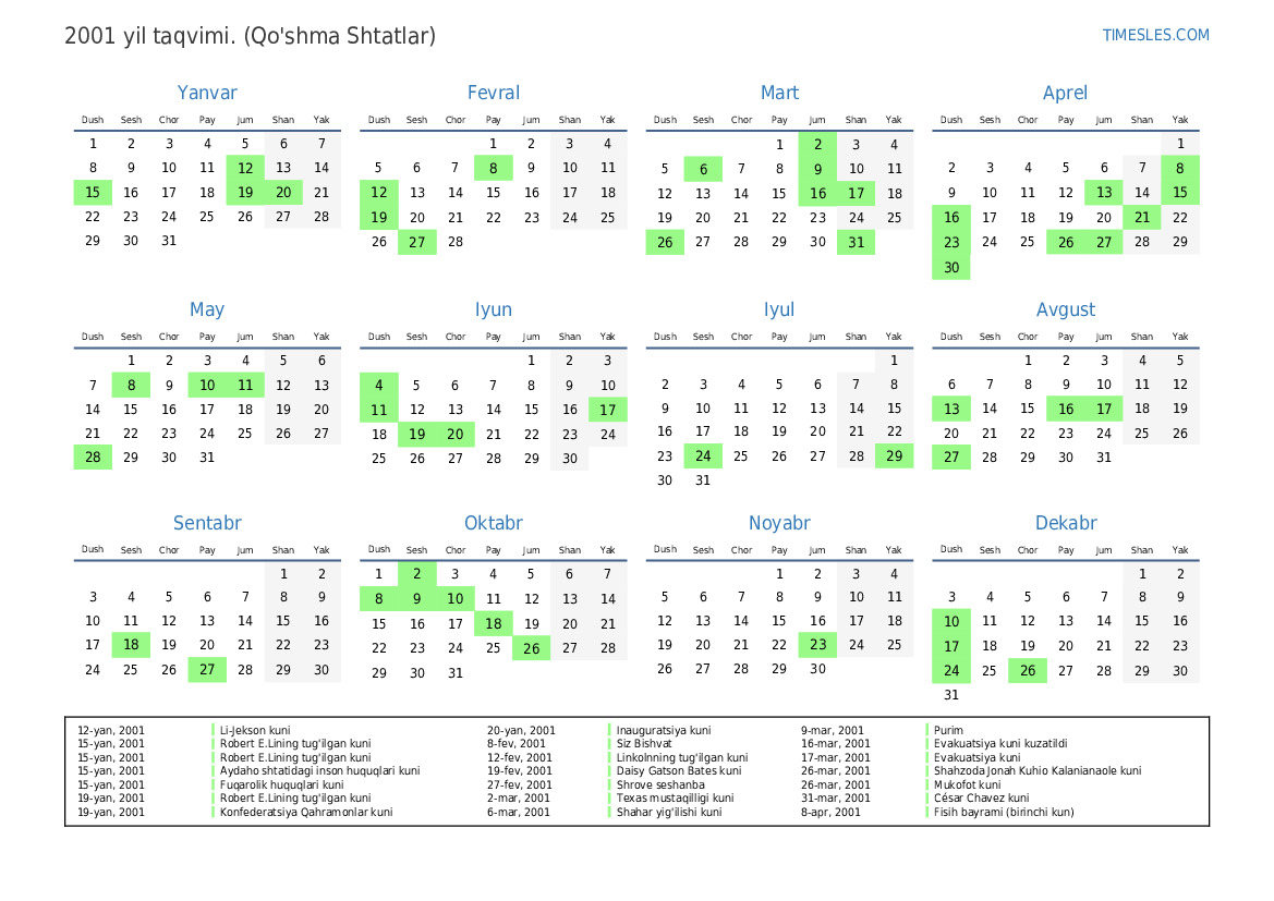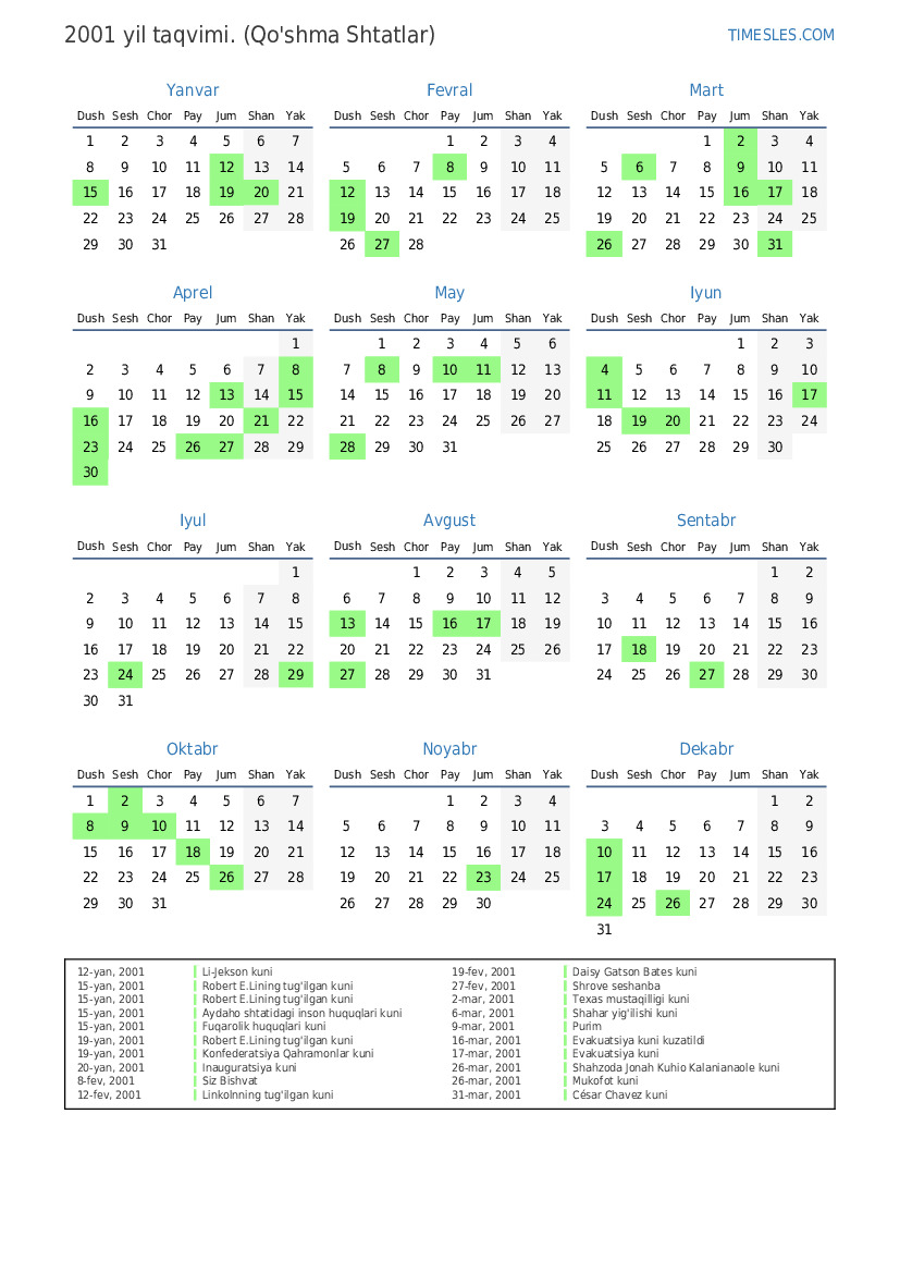 1-mar, 2001 Ayollar tarixi oyligining birinchi kuni