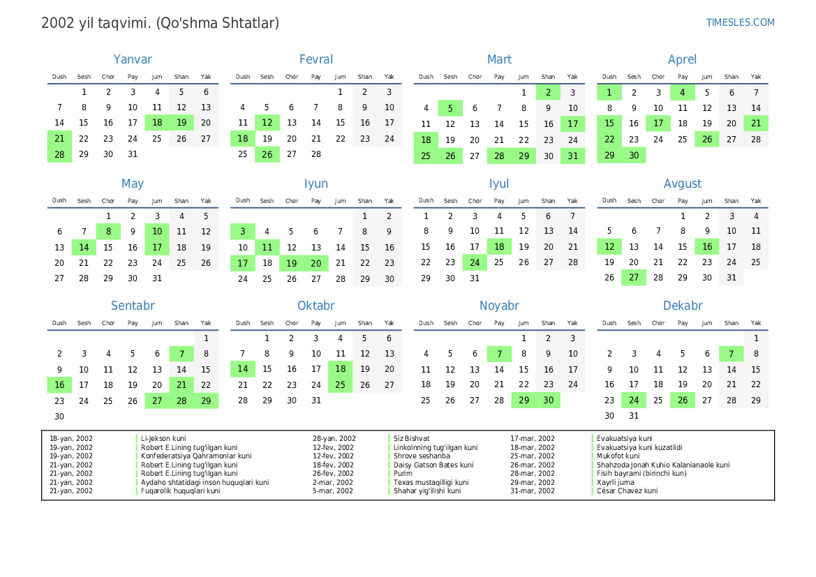 18-fev, 2002 Prezidentlar kuni