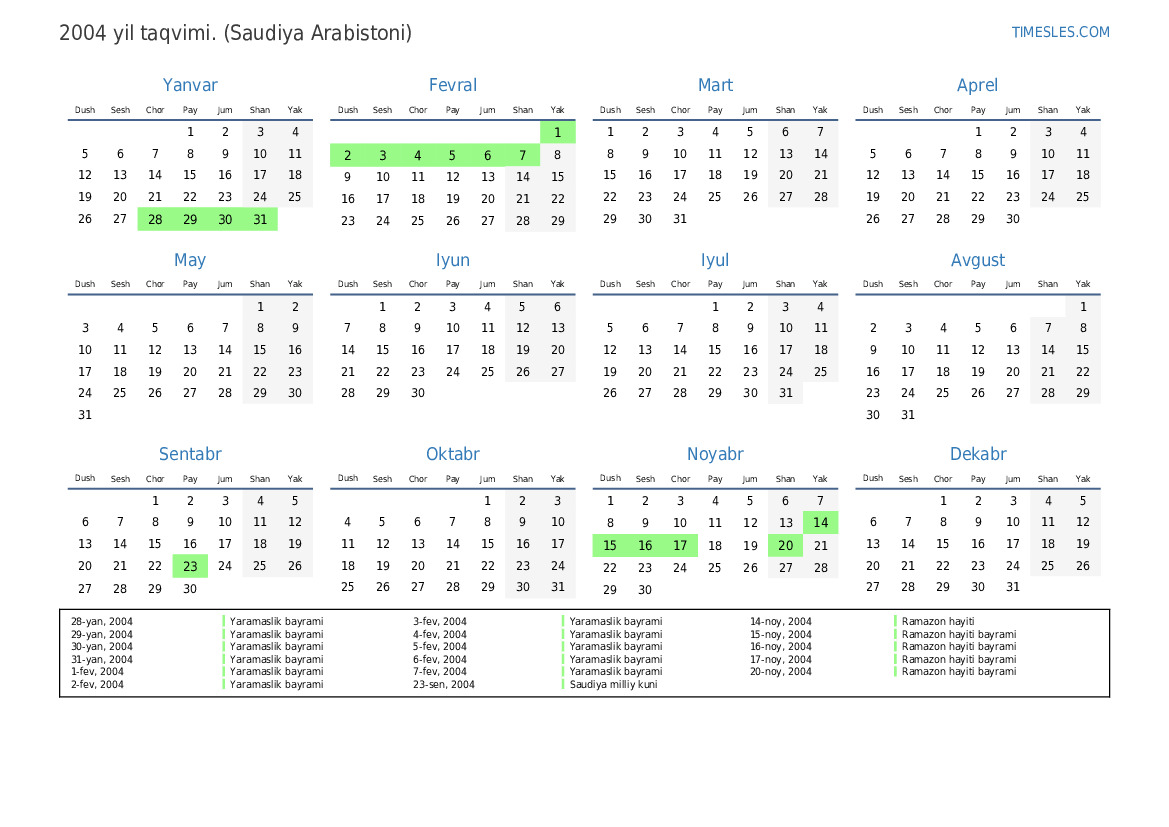 18-noy, 2004 Ramazon hayiti bayrami (faqat davlat sektorida)