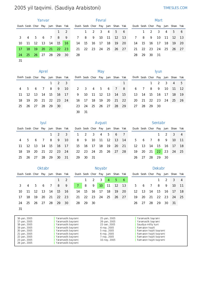9-noy, 2005 Ramazon hayiti bayrami (faqat davlat sektorida)