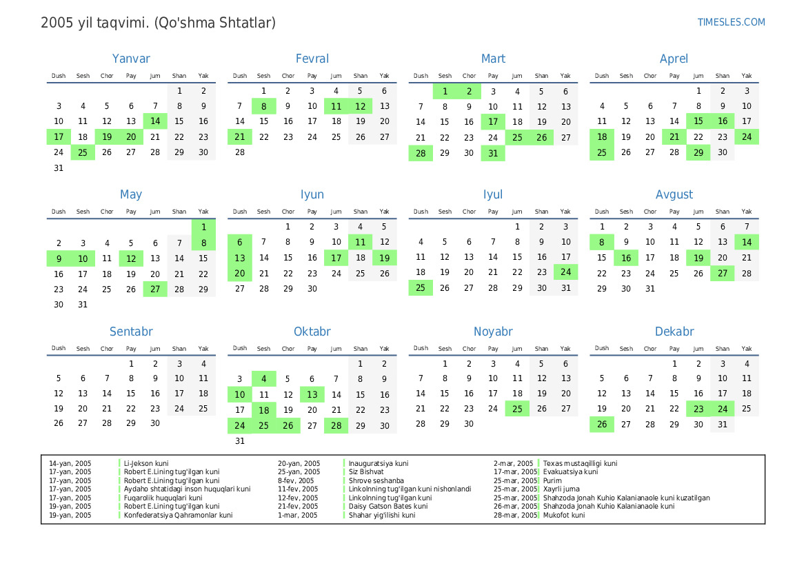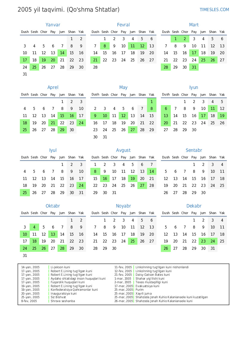 26-dek, 2005 Rojdestvo kuni uchun dam olish kuni