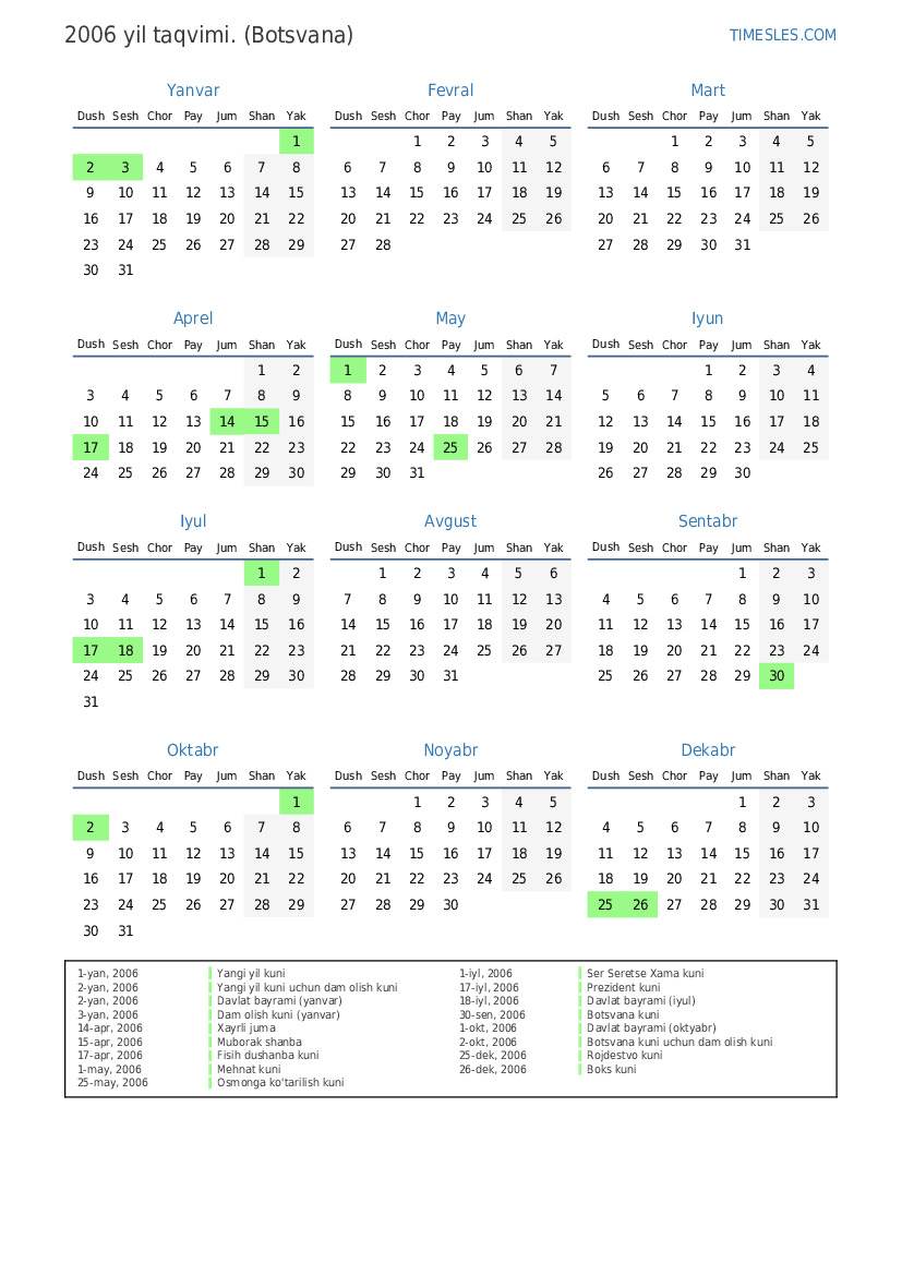2-okt, 2006 Botsvana kuni uchun dam olish kuni