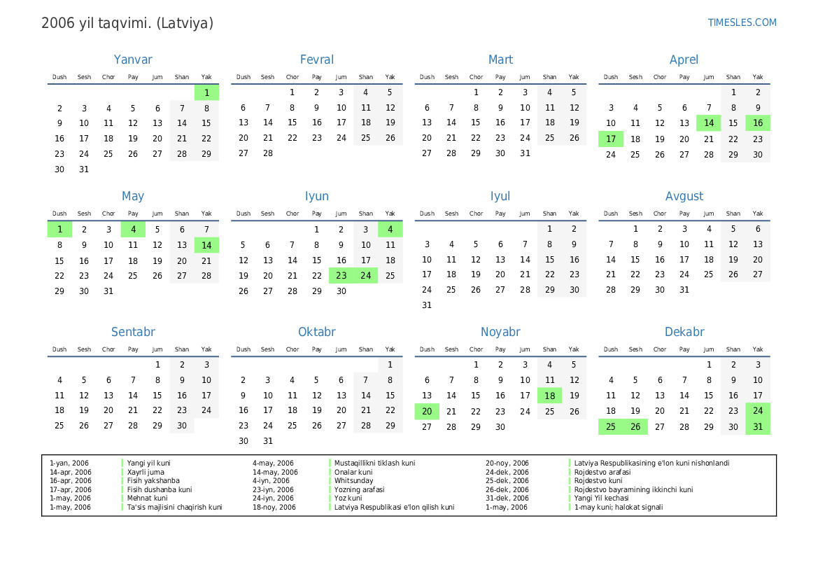 20-noy, 2006 Latviya Respublikasining e'lon kuni nishonlandi