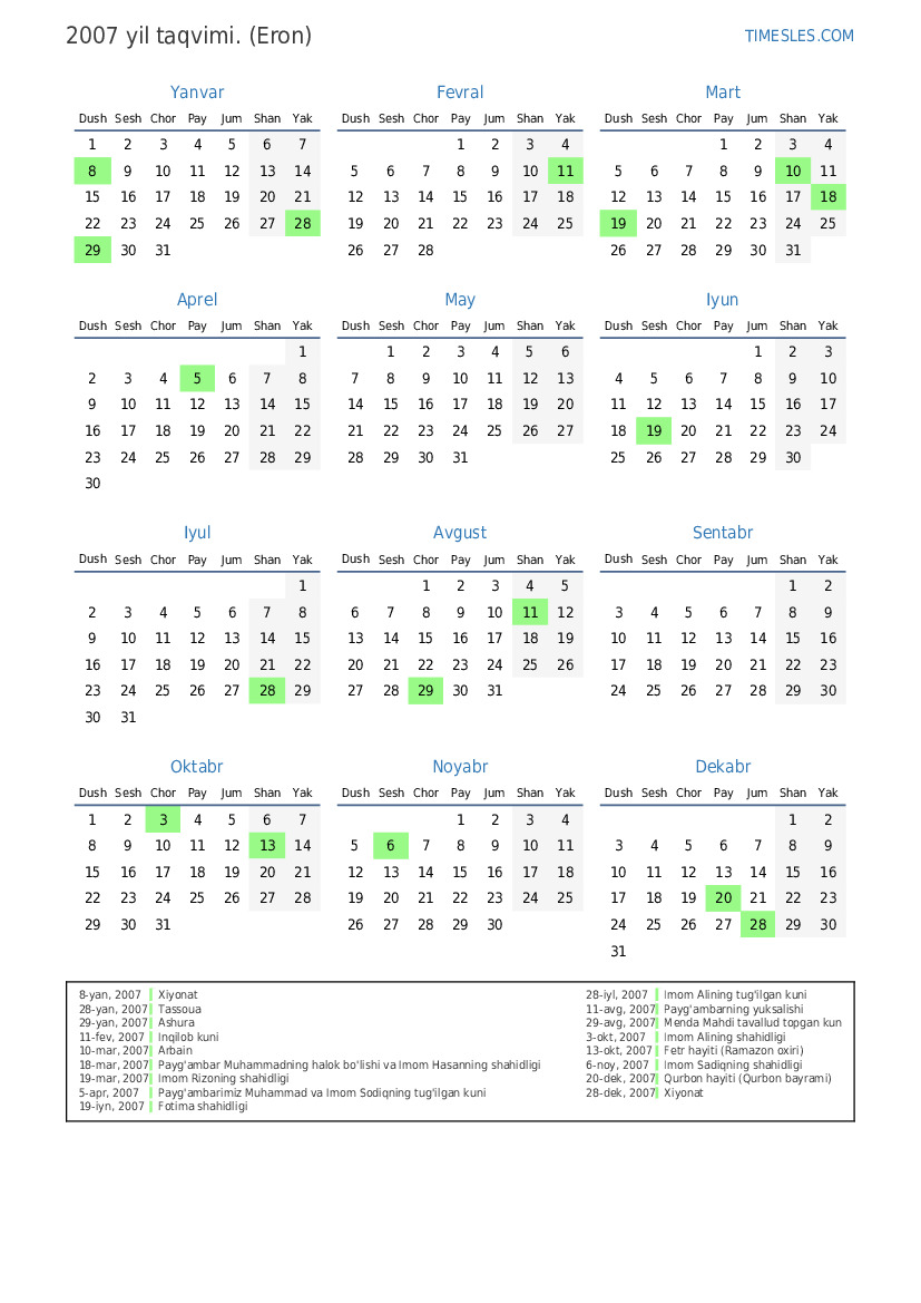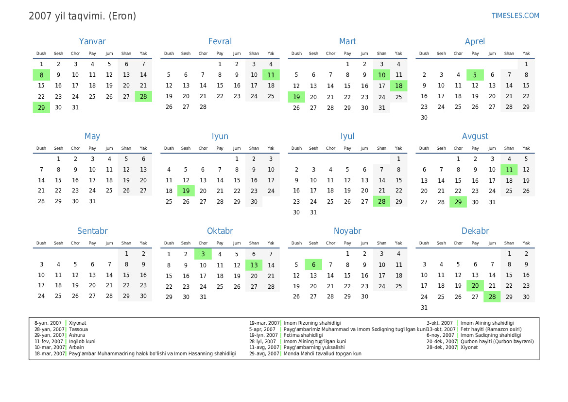20-dek, 2007 Qurbon hayiti (Qurbon bayrami)