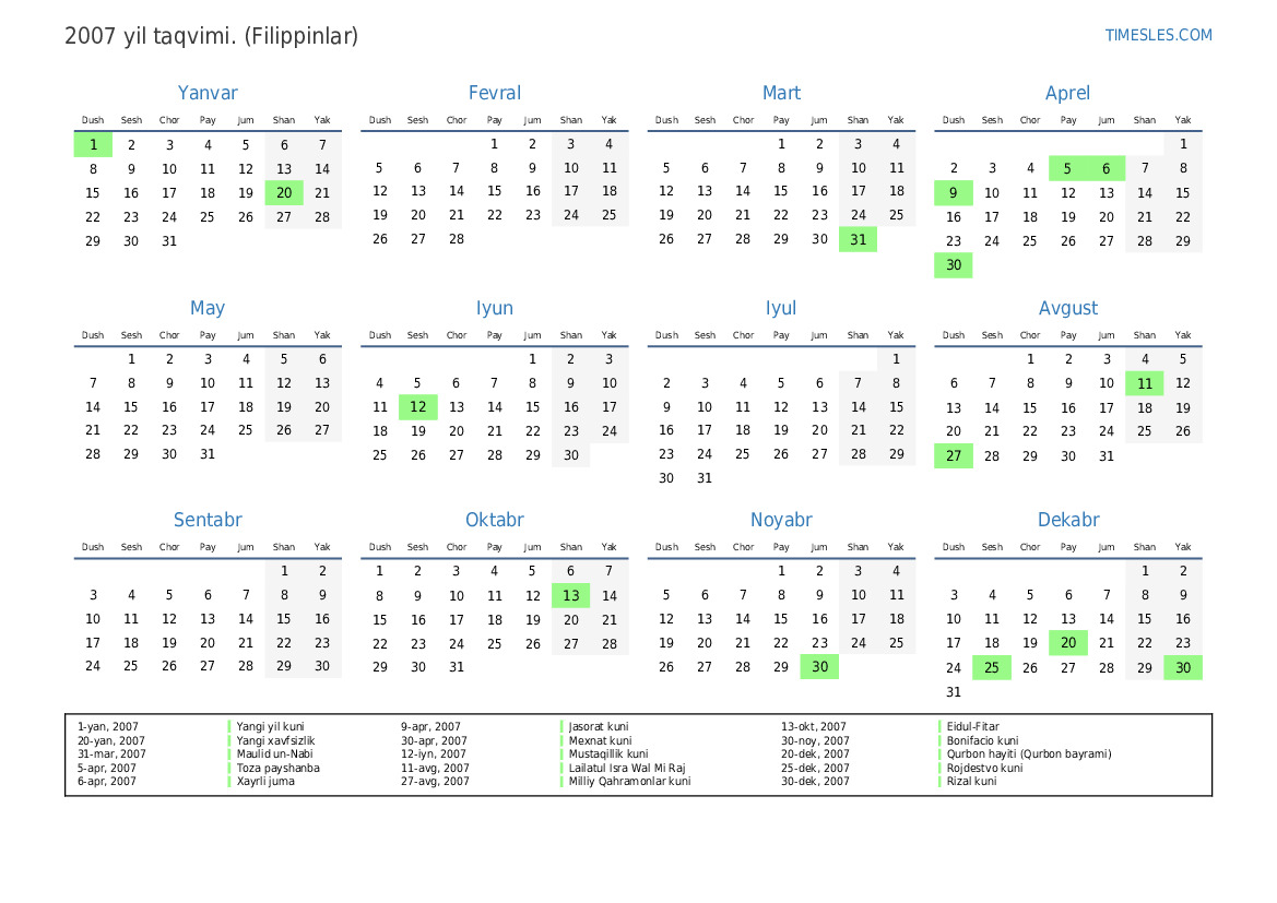 20-avg, 2007 Ninoy Aquino kuni ishlamaydigan kun