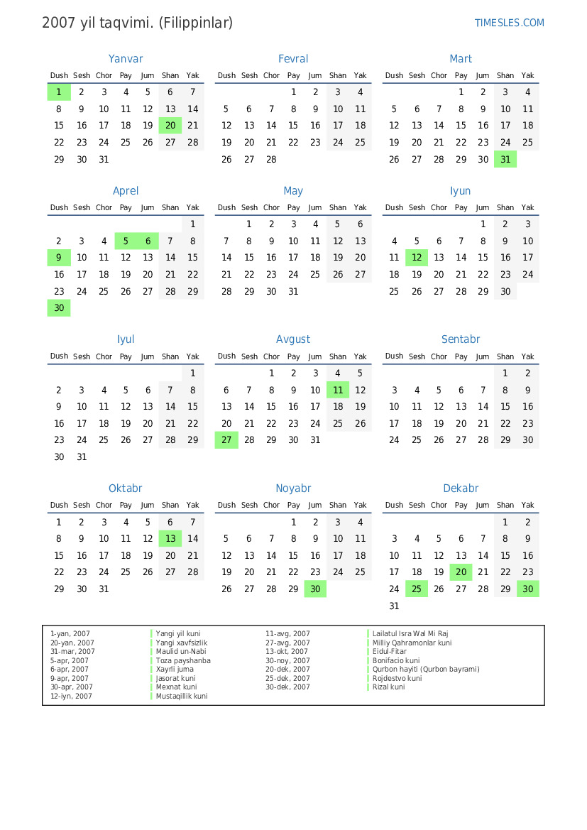 11-iyn, 2007 Mustaqillik kuni ishlamaydigan bayram