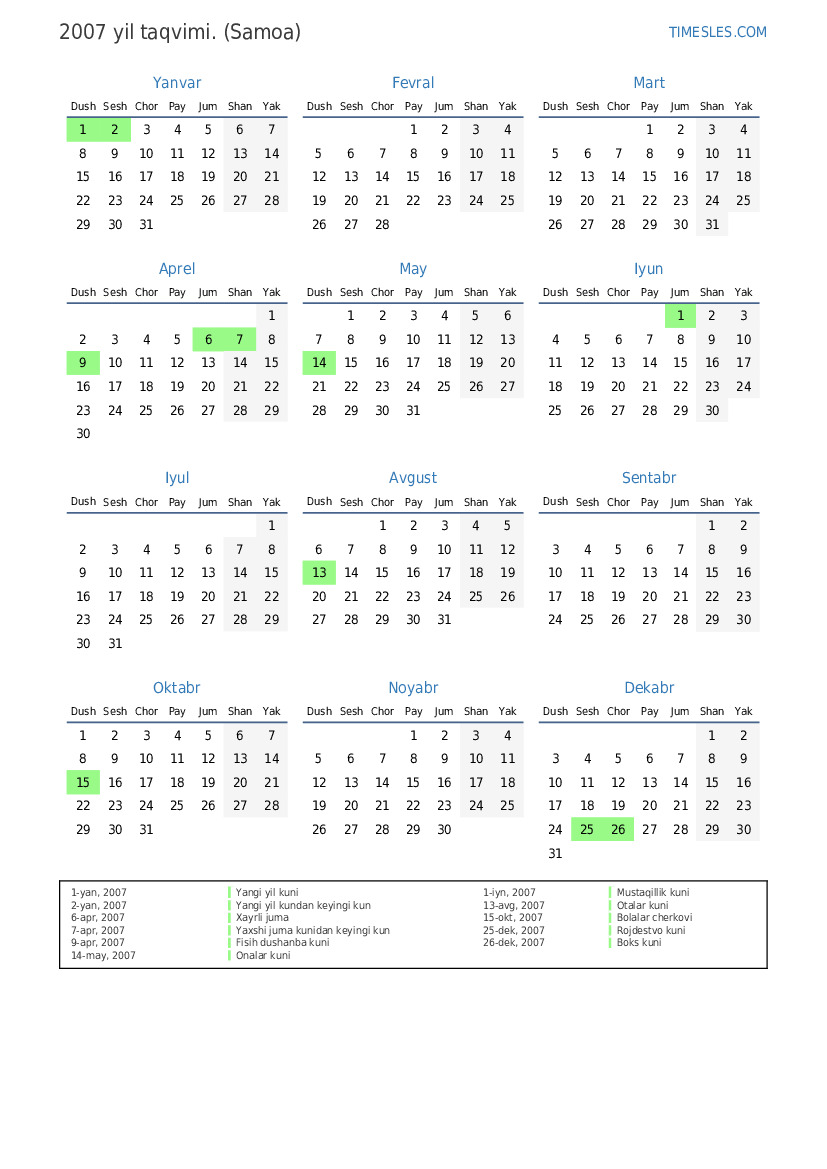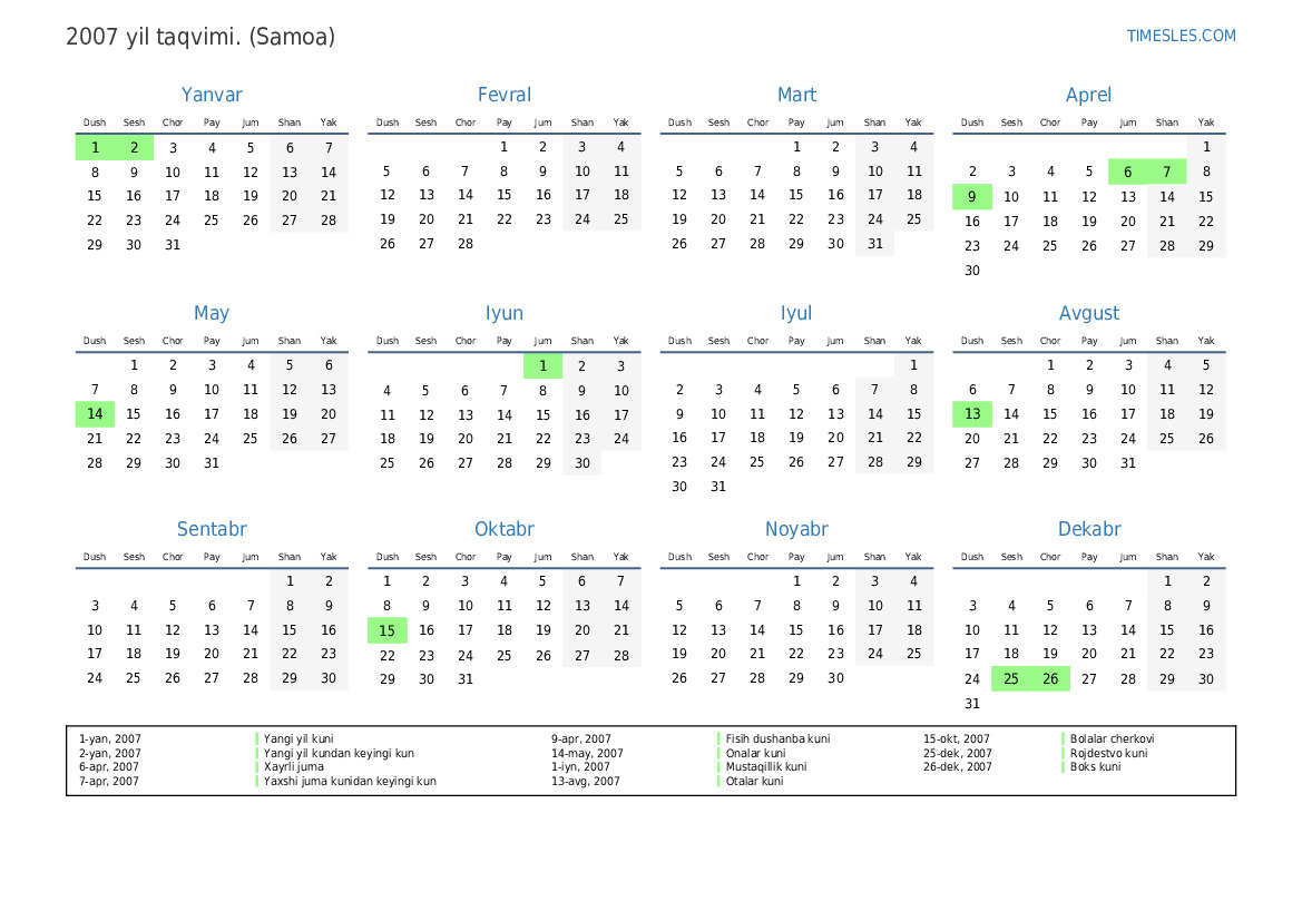 1-yan, 2007 Yangi yil kuni