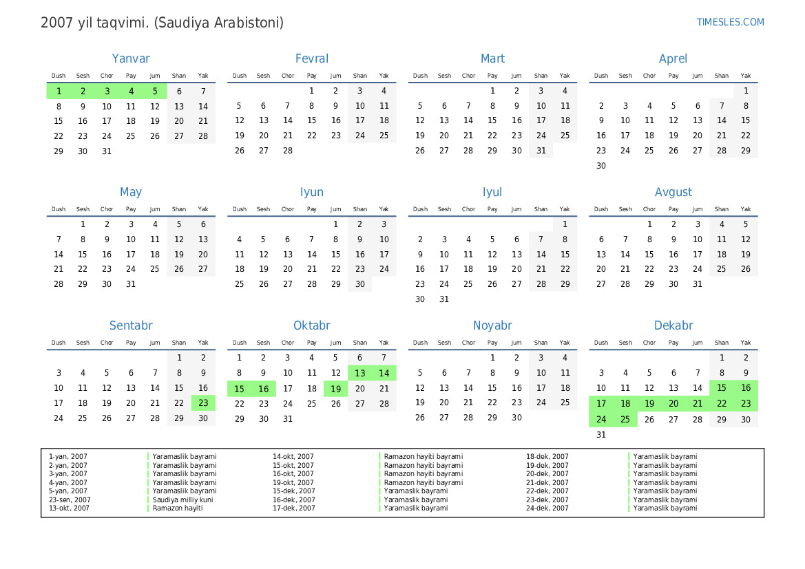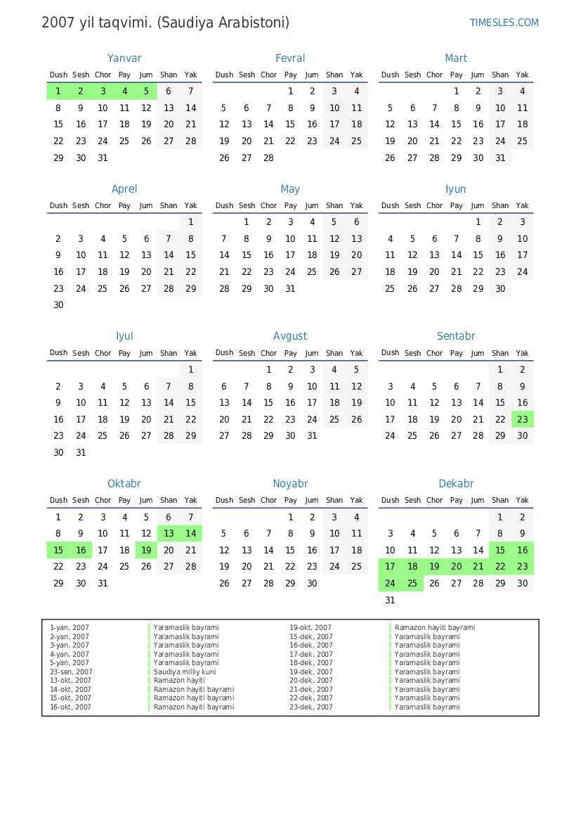 18-okt, 2007 Ramazon hayiti bayrami (faqat davlat sektorida)
