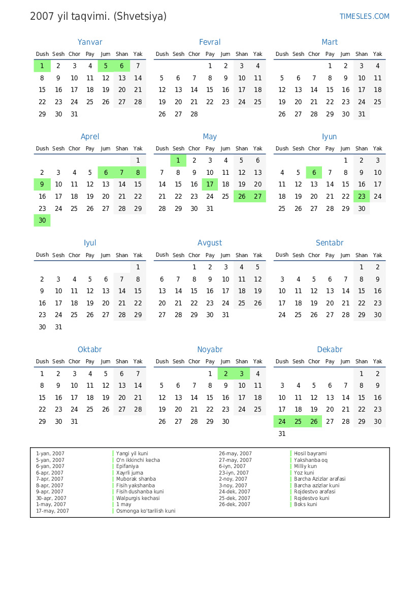 23-dek, 2007 To'rtinchi kelish yakshanba
