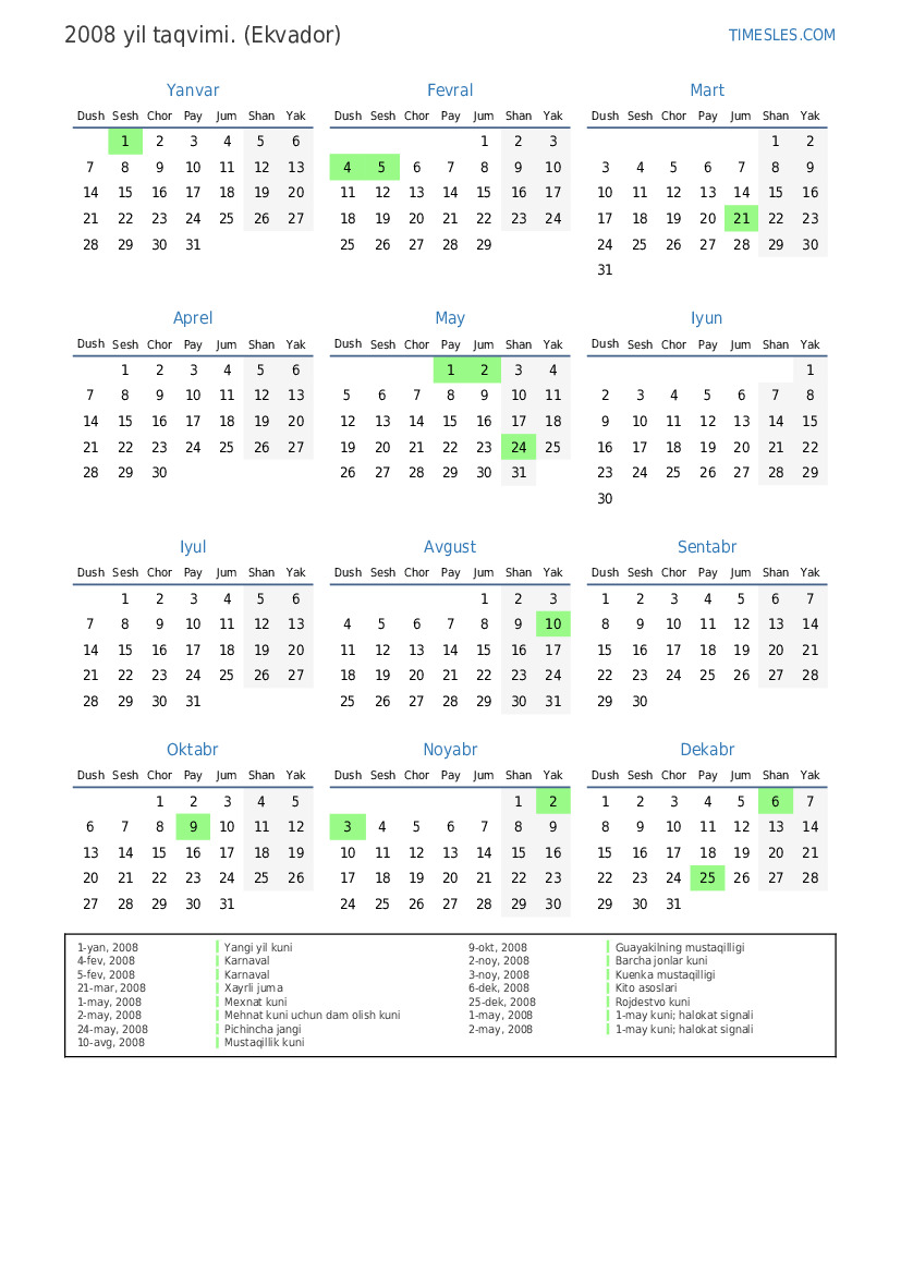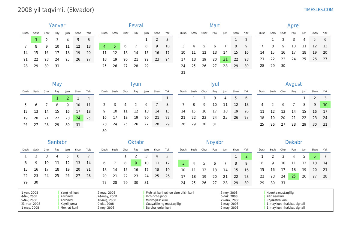 2-may, 2008 Mehnat kuni uchun dam olish kuni