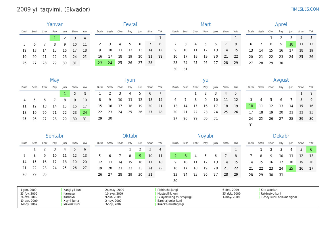 1-yan, 2009 Yangi yil kuni