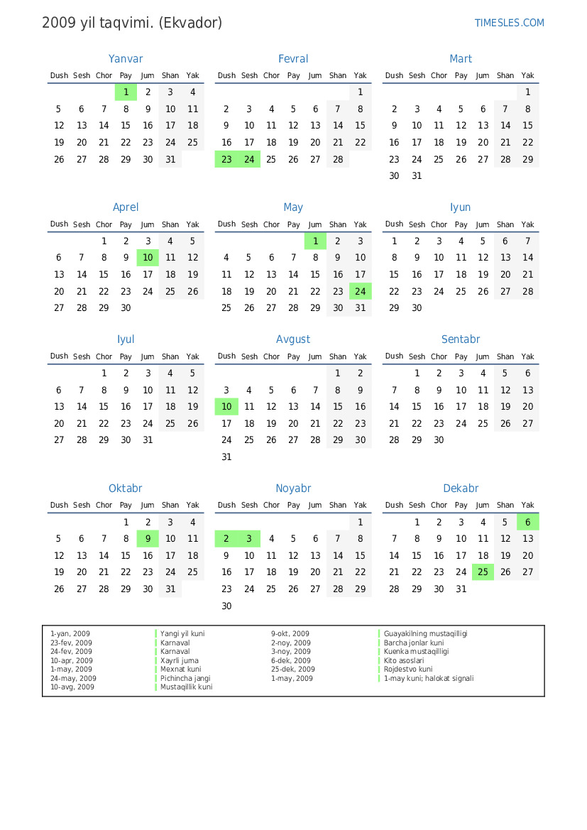 2-noy, 2009 Barcha jonlar kuni