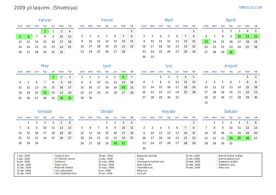 20-dek, 2009 To'rtinchi kelish yakshanba